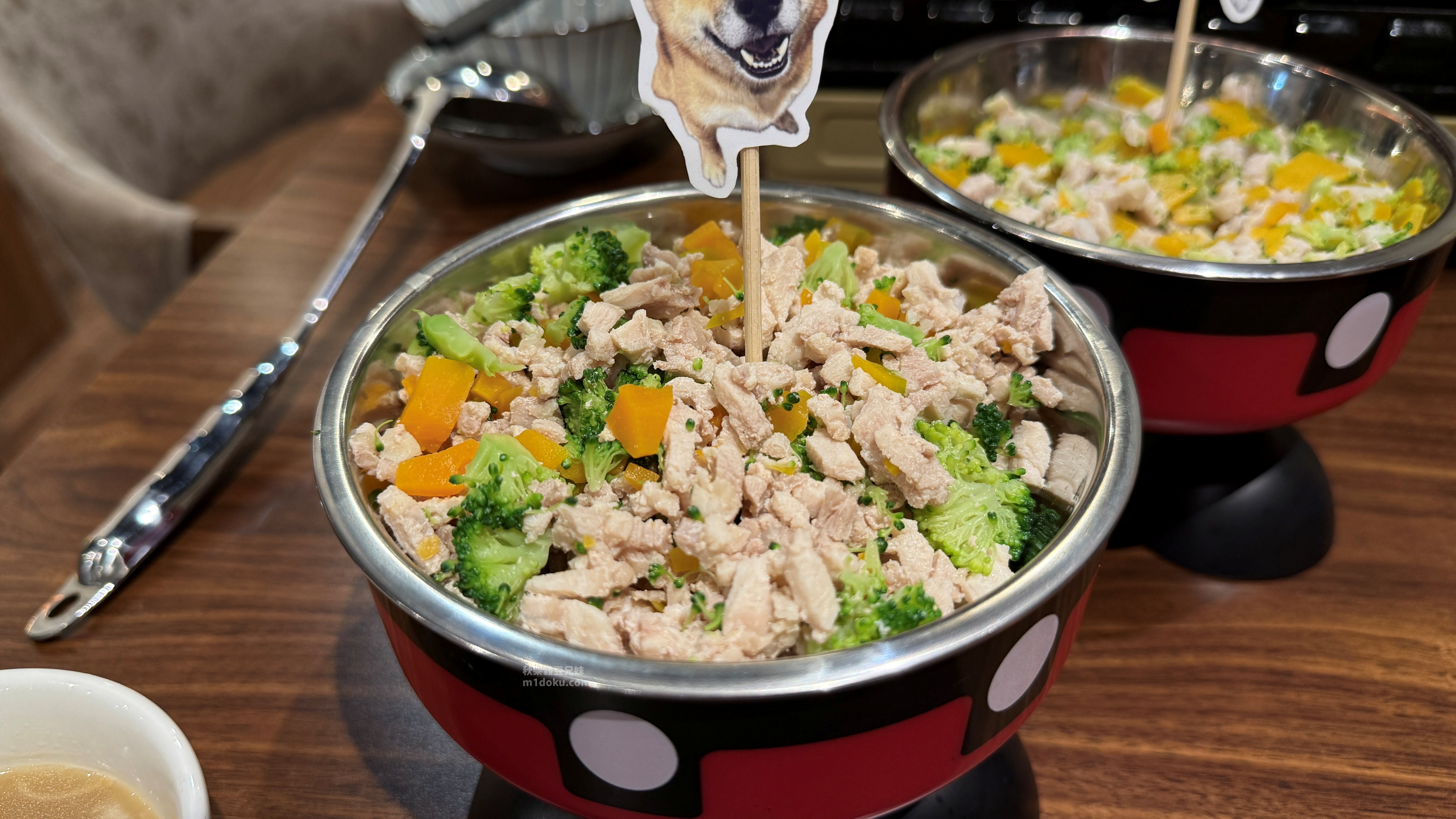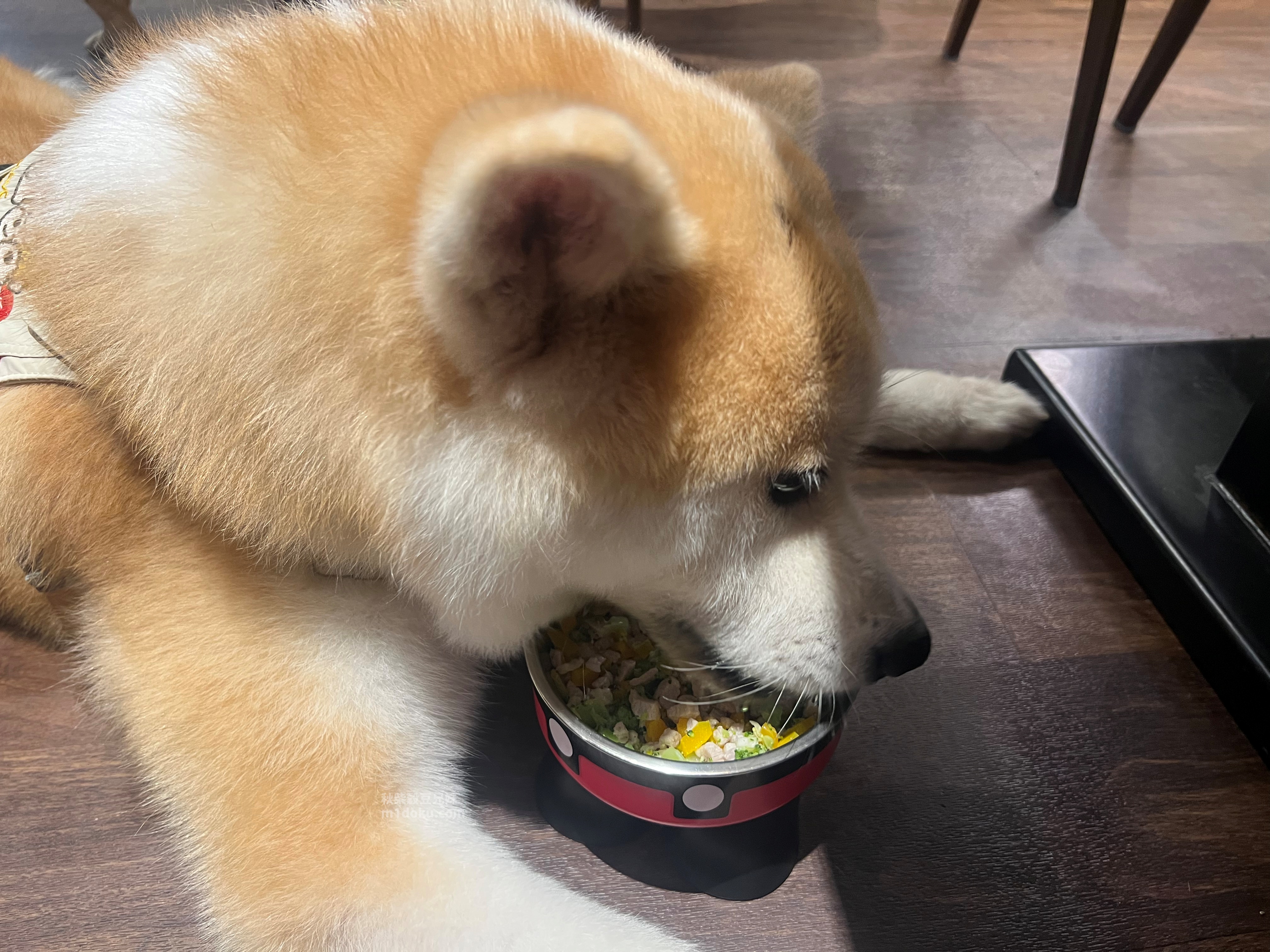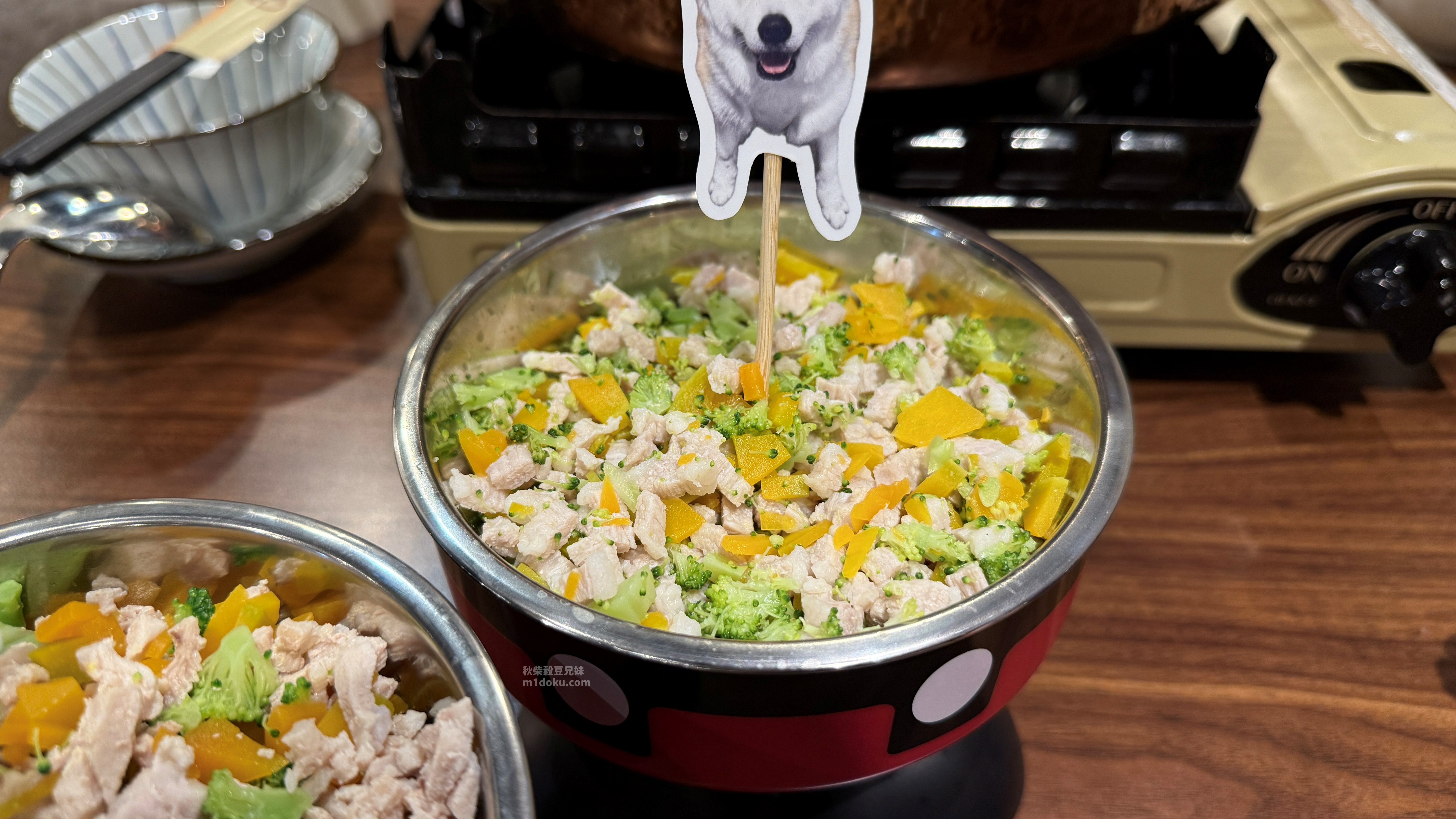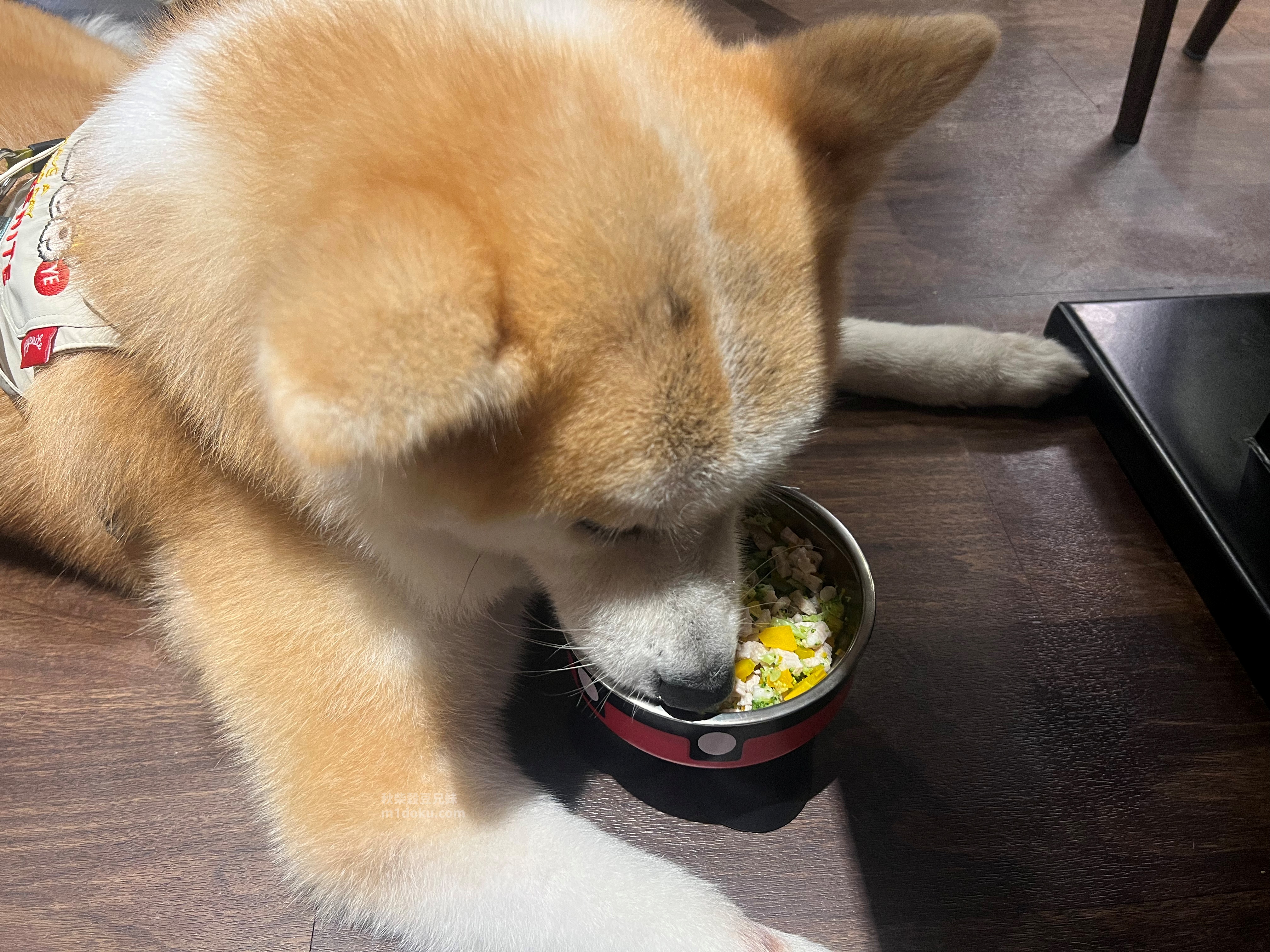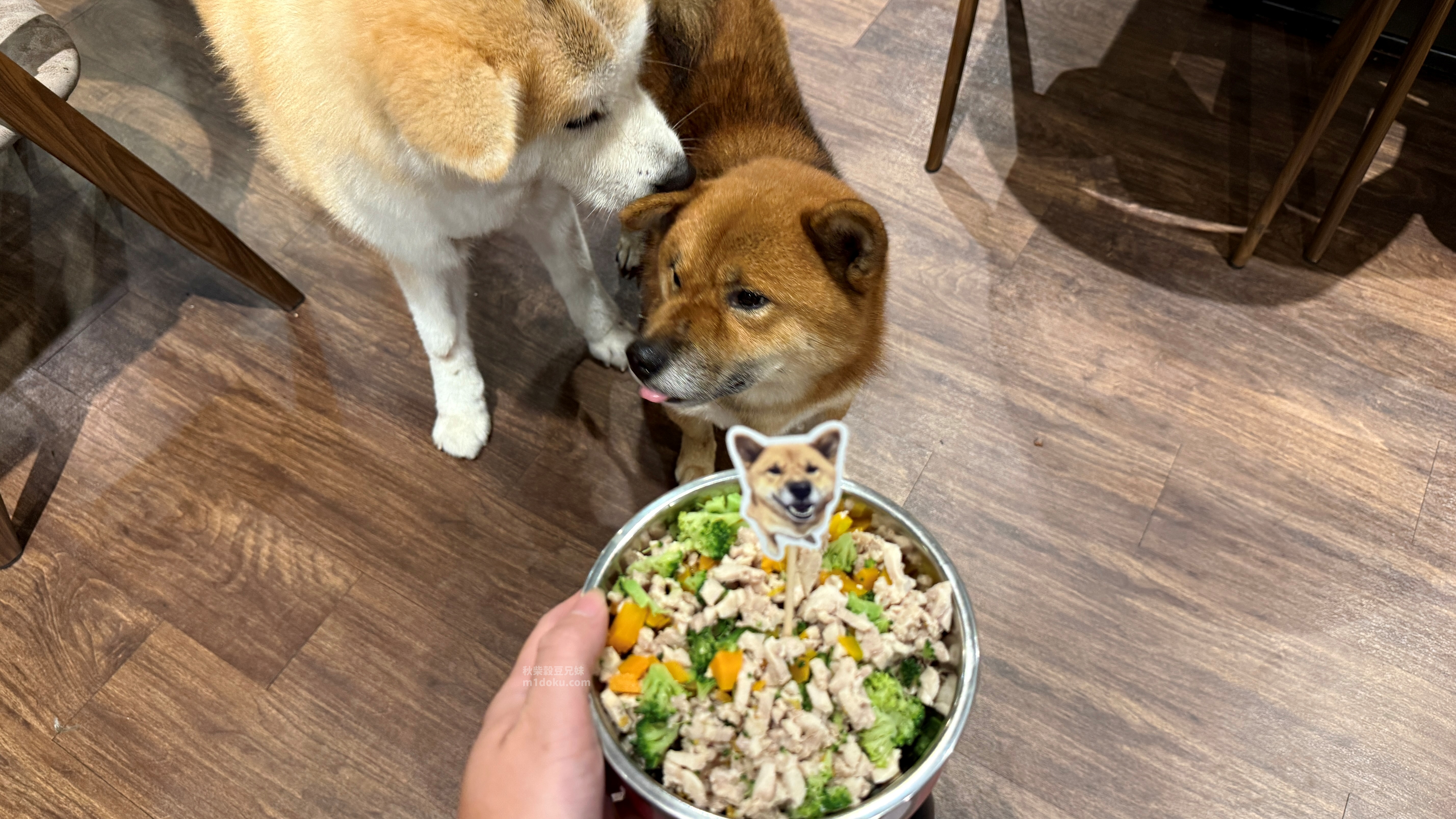 另外不得不提到的是店家對毛孩超級有心!每天沒有販售完的新鮮溫體牛,店家決不浪費,使用低溫慢烘+紫外線殺菌的方式,製作成天然的溫體牛肉乾,分享給所有來店的毛孩們,完全沒加調味,保留了牛肉本身的營養及香氣,讓狗狗能安心吃乾淨又健康!才一送上,連馬麻我整個都被驚呼到,心裡想「哇賽,小狗也太幸福吃太好了吧(大笑)」米豆、米穀就立刻變身超級小吃貨,一直討著要吃,完全被寵壞XD。不只送上毛孩專屬溫體牛肉乾,接著還有寵物餐選擇,店員會先問毛孩是否有過敏的食材,針對毛孩過敏的食材去做調整,整碗滿滿的肉肉加上蔬菜,米豆吃的是雞肉南瓜花椰菜、米穀吃的是豬肉南瓜花椰菜,現場還會製作毛孩專屬的大頭小旗子,整體的小細節都讓我心被融化了,有夠感動的QQ。(寵物餐點內容依店家當日提供為主)