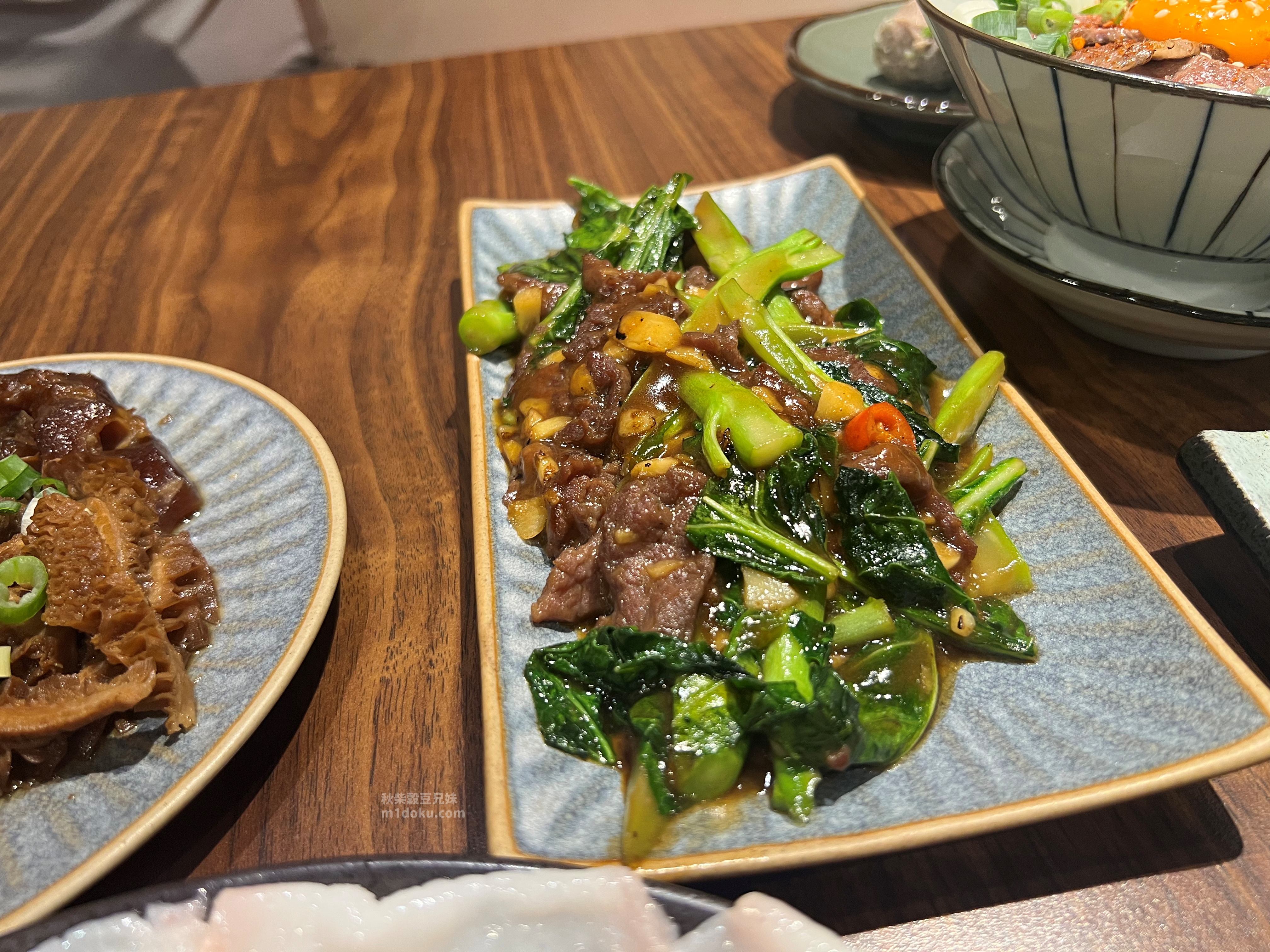 套餐還有滷味可以選擇,我直接升級主廚滷味,牛肚、牛筋、牛腱滷的相當入味,香氣十足。芥蘭炒溫體牛也是令人相當驚艷,芥蘭相當清脆且不苦,牛肉相當軟嫩滑順,兩者搭配在一起讓人想要多吃一碗白飯了呢(笑)