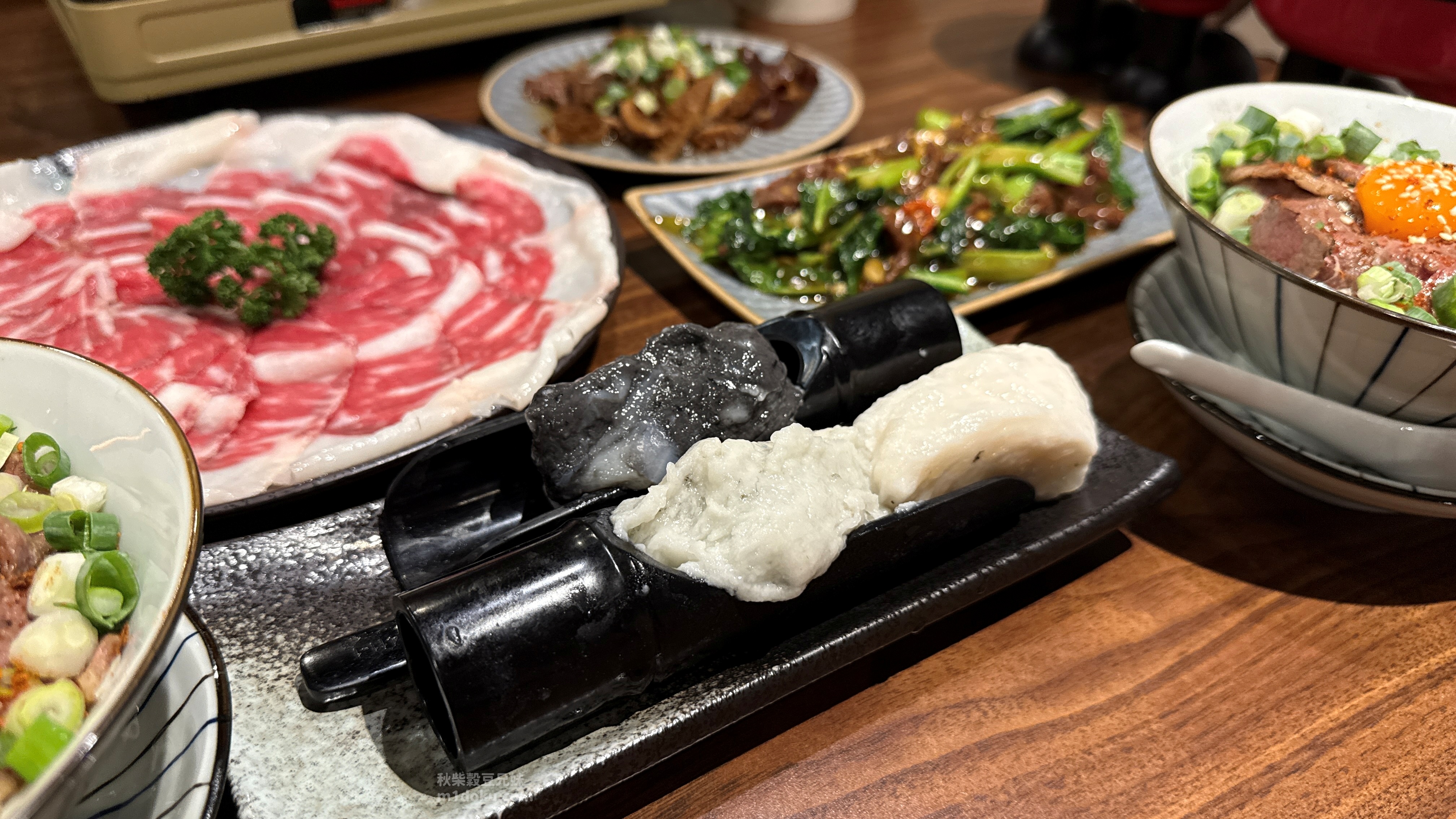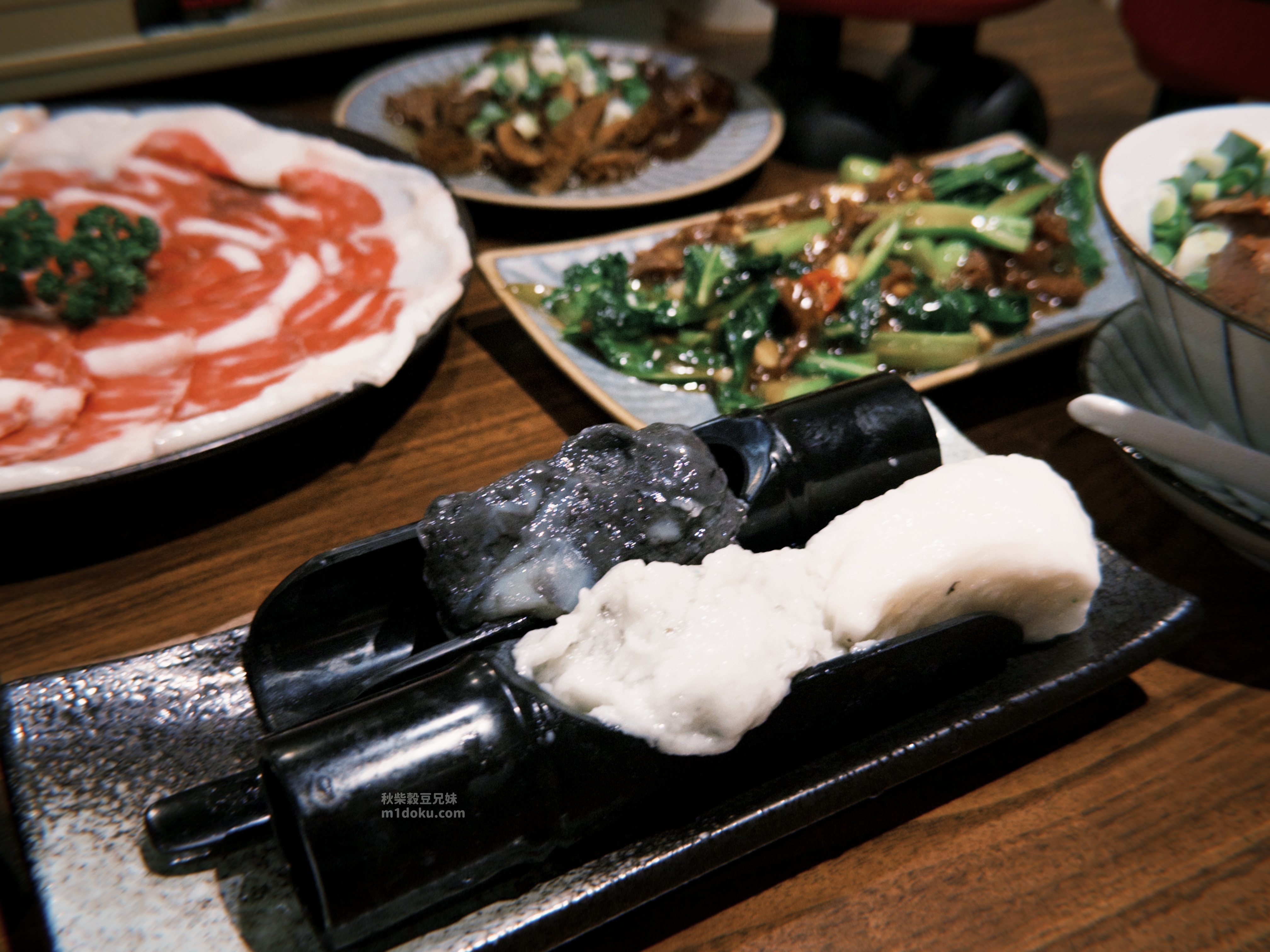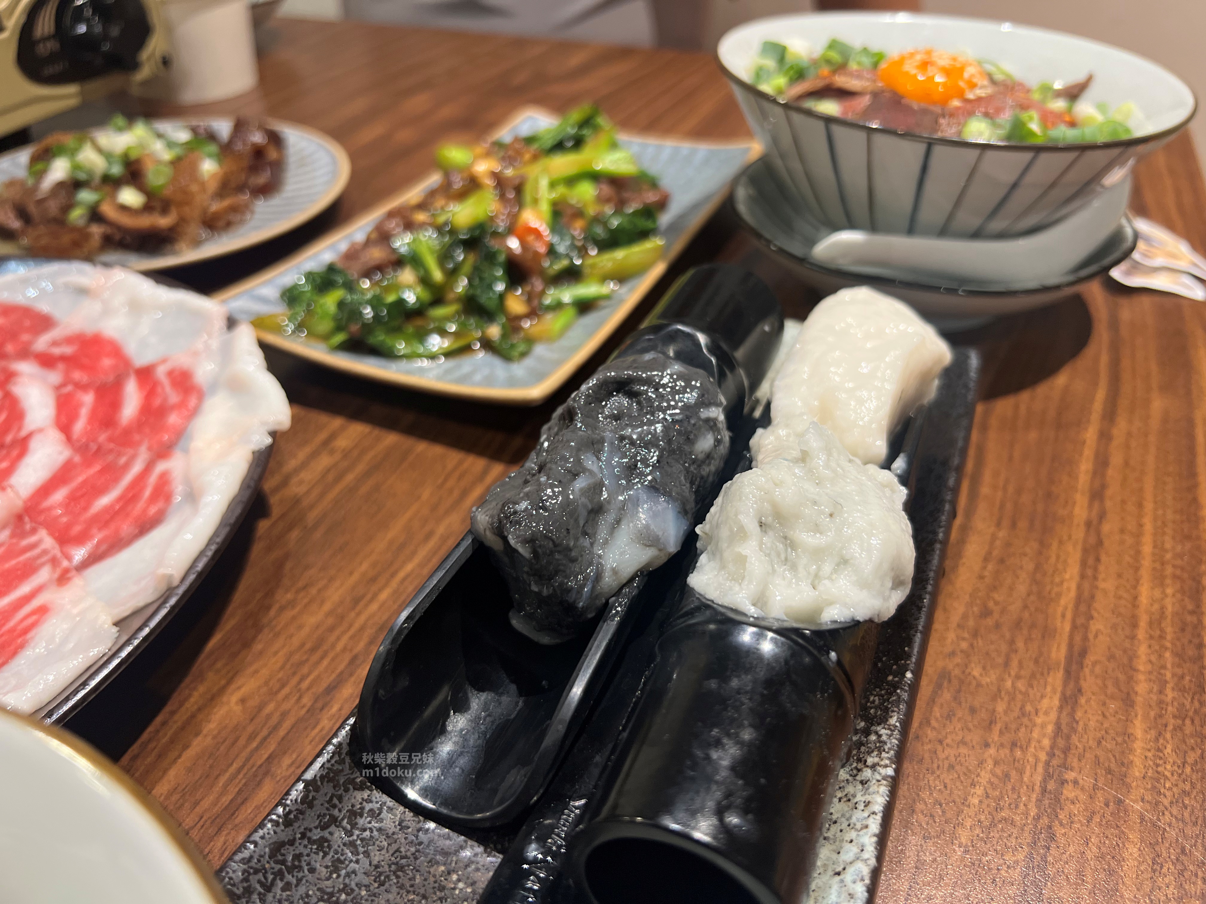 點綴火鍋的火鍋料,超級推薦一定要點剝皮辣椒牛肉丸還有手工蛋餃,綜合漿也相當不錯!剝皮辣椒牛肉丸有微微剝皮辣椒的辛香卻不搶牛肉甜香,Q彈又涮嘴。這次沒有點到手工蛋餃,但我點了綜合漿,墨魚、蝦子、花枝三種漿加入任何一個湯底都好吃,可以明顯吃到墨魚、蝦子及花枝。