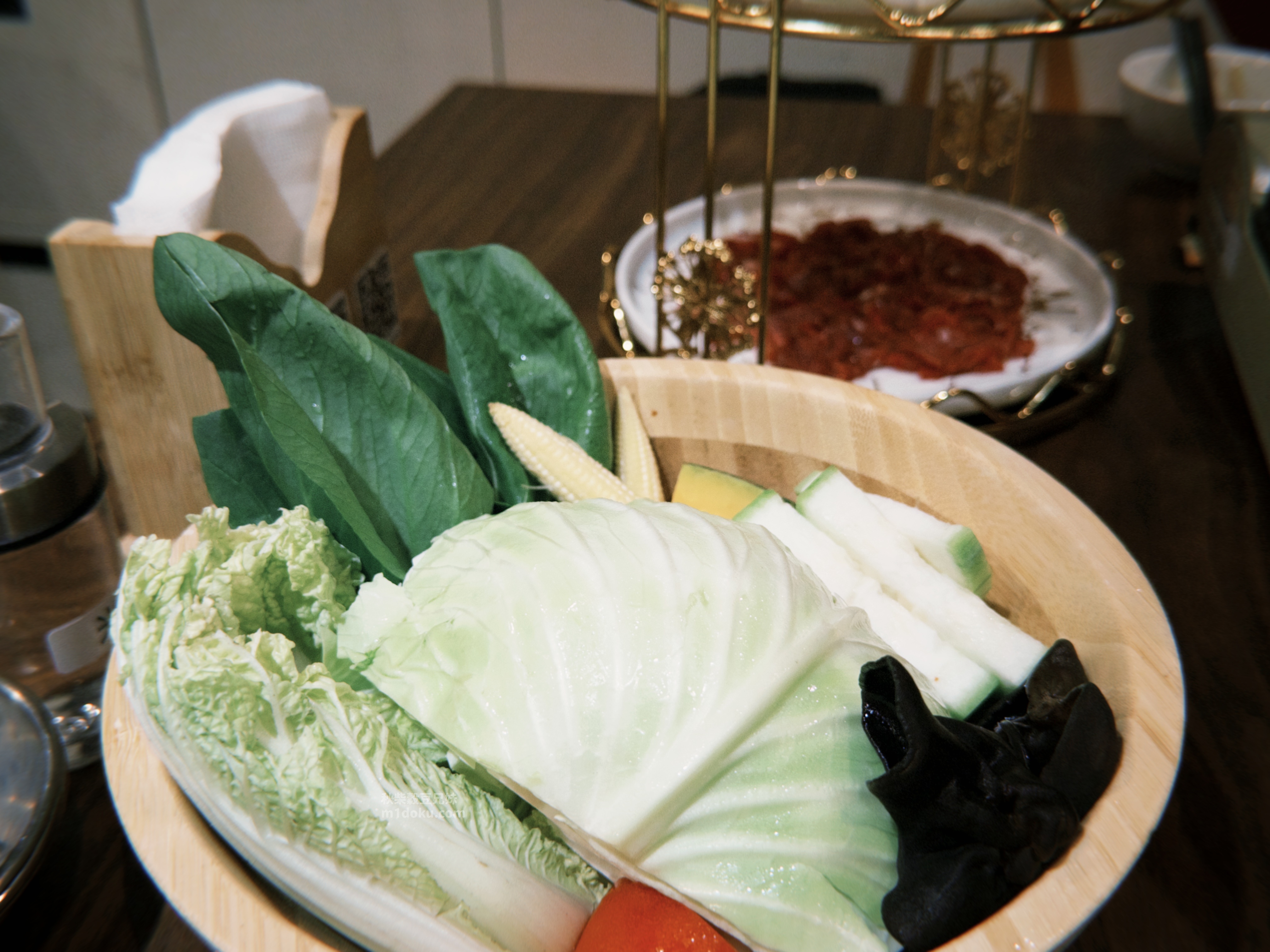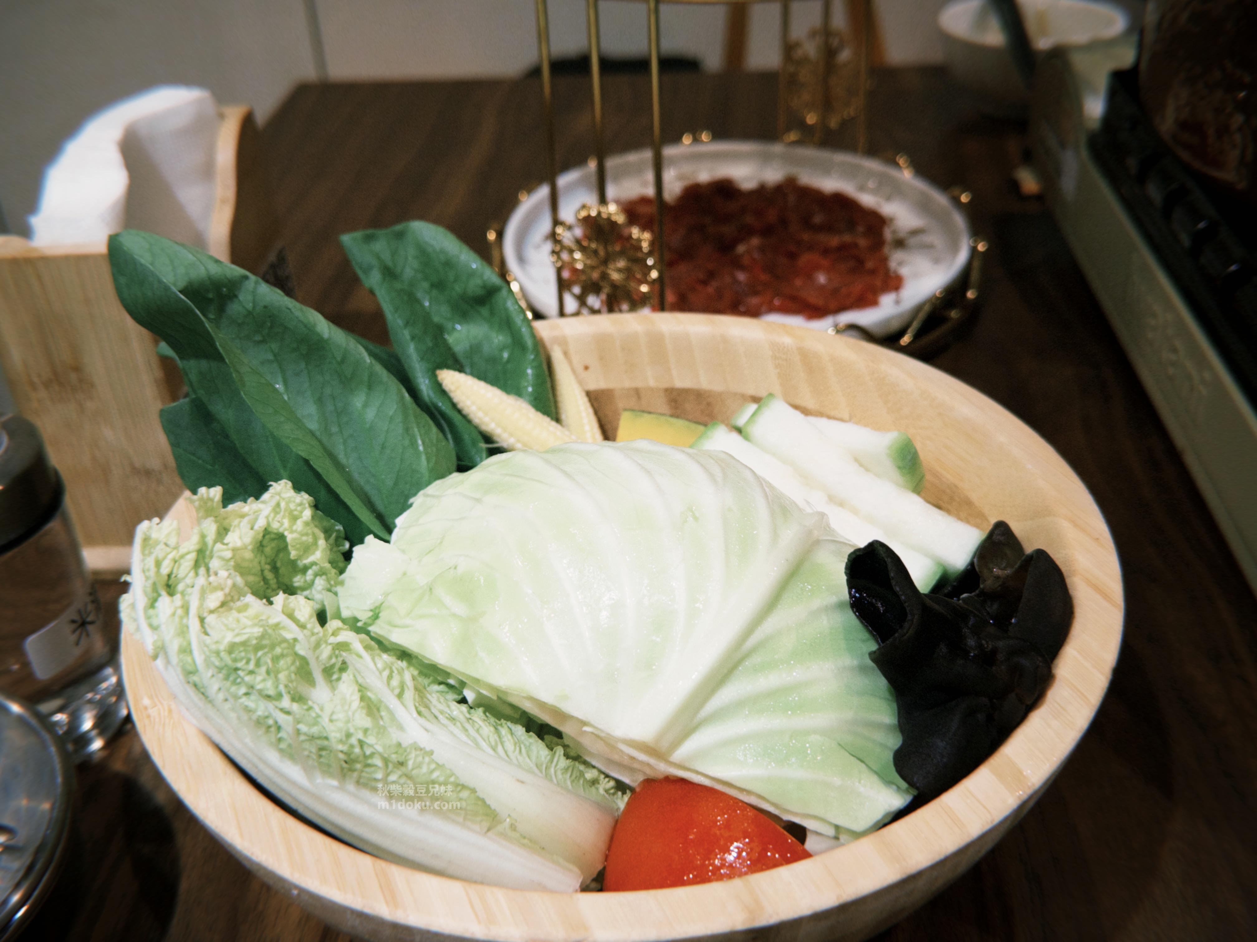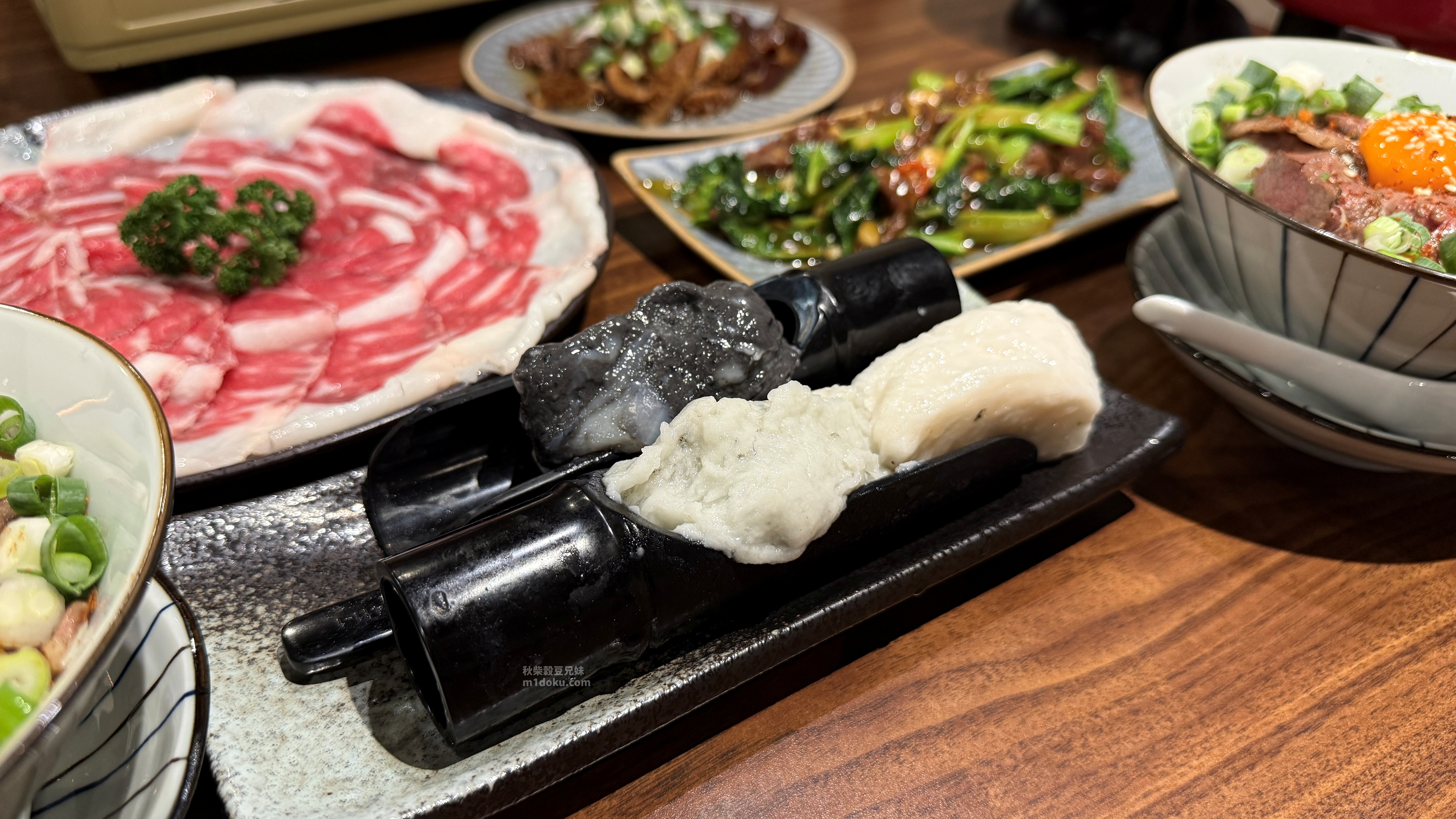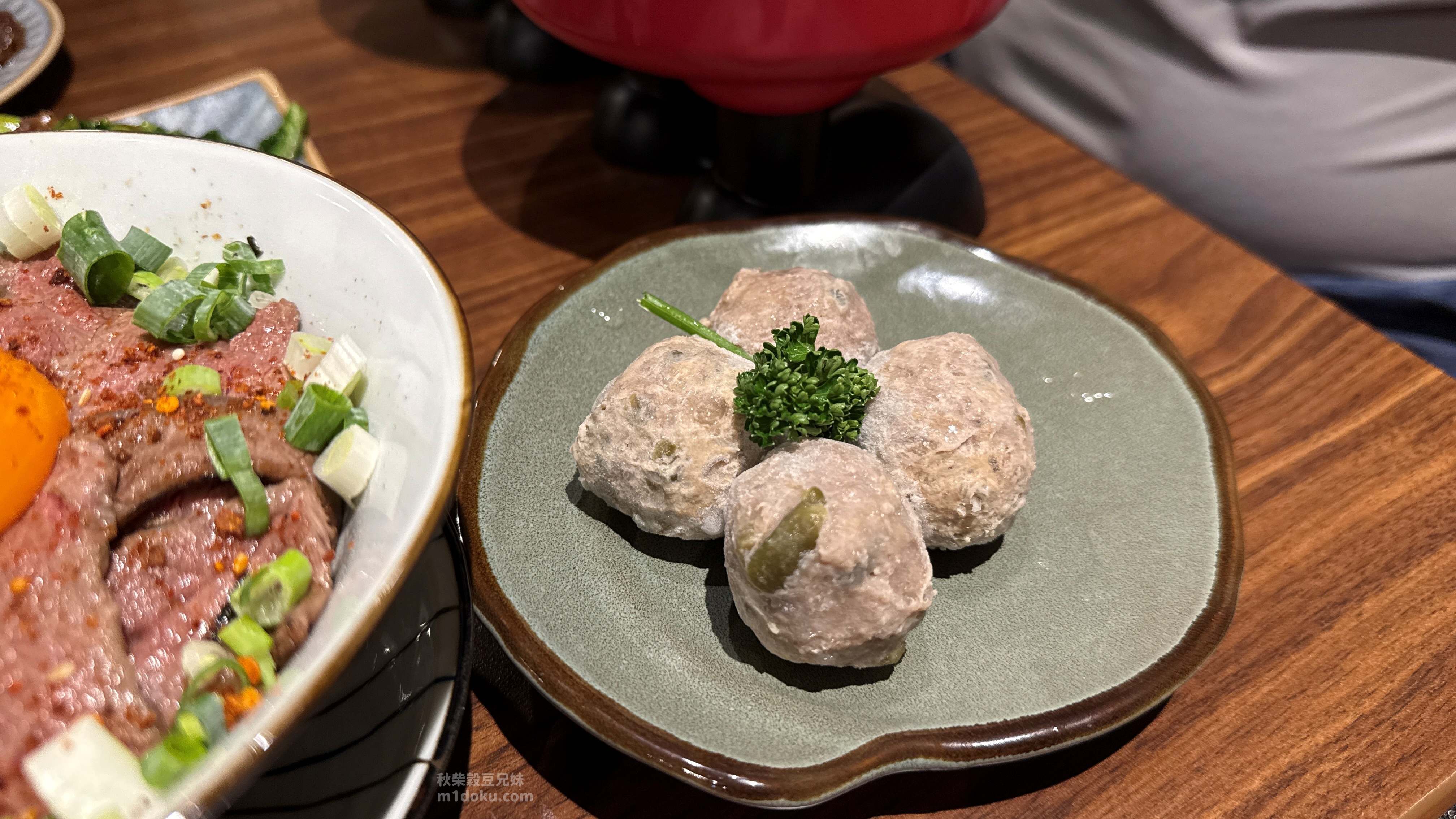 點綴火鍋的火鍋料,超級推薦一定要點剝皮辣椒牛肉丸還有手工蛋餃,綜合漿也相當不錯!剝皮辣椒牛肉丸有微微剝皮辣椒的辛香卻不搶牛肉甜香,Q彈又涮嘴。這次沒有點到手工蛋餃,但我點了綜合漿,墨魚、蝦子、花枝三種漿加入任何一個湯底都好吃,可以明顯吃到墨魚、蝦子及花枝。