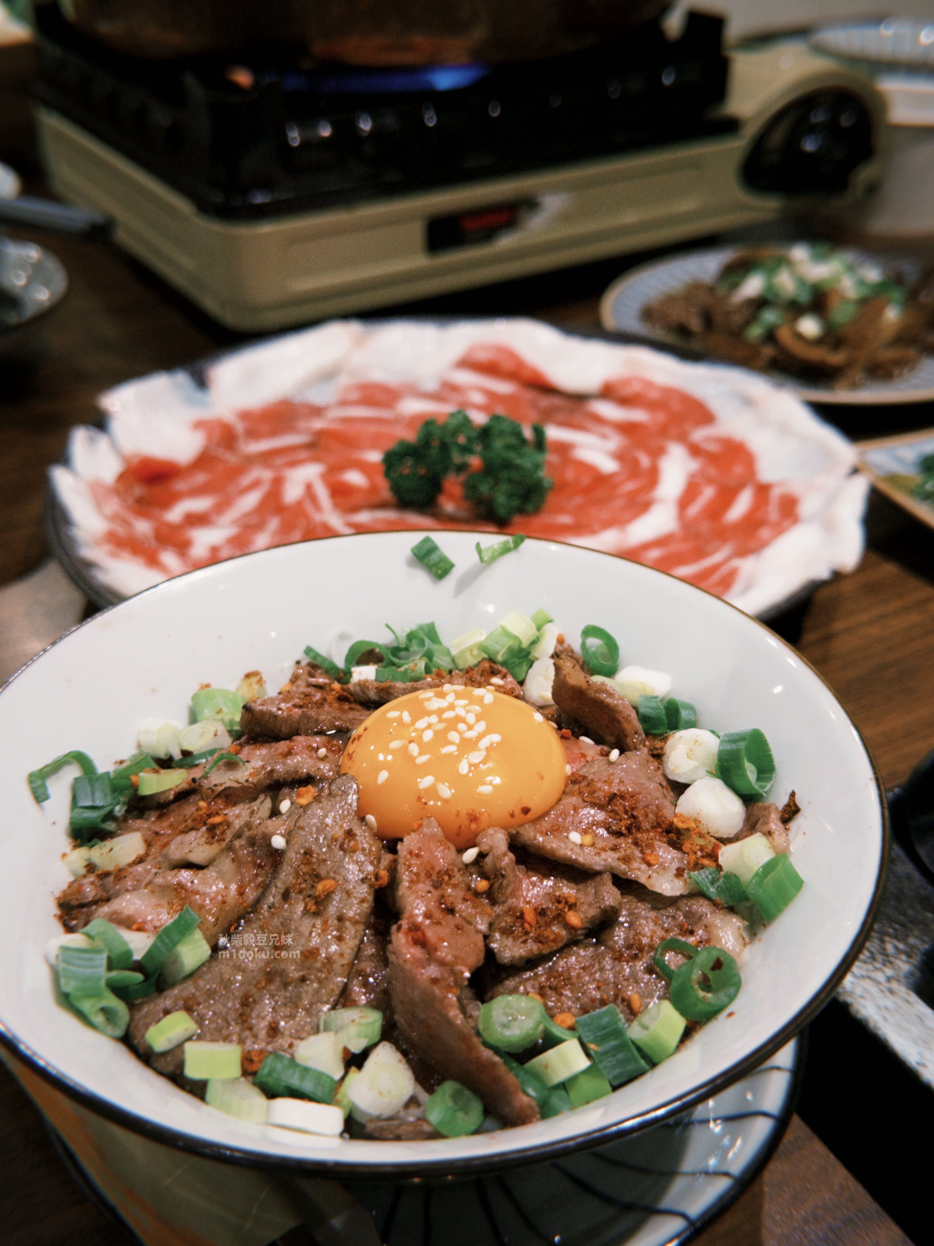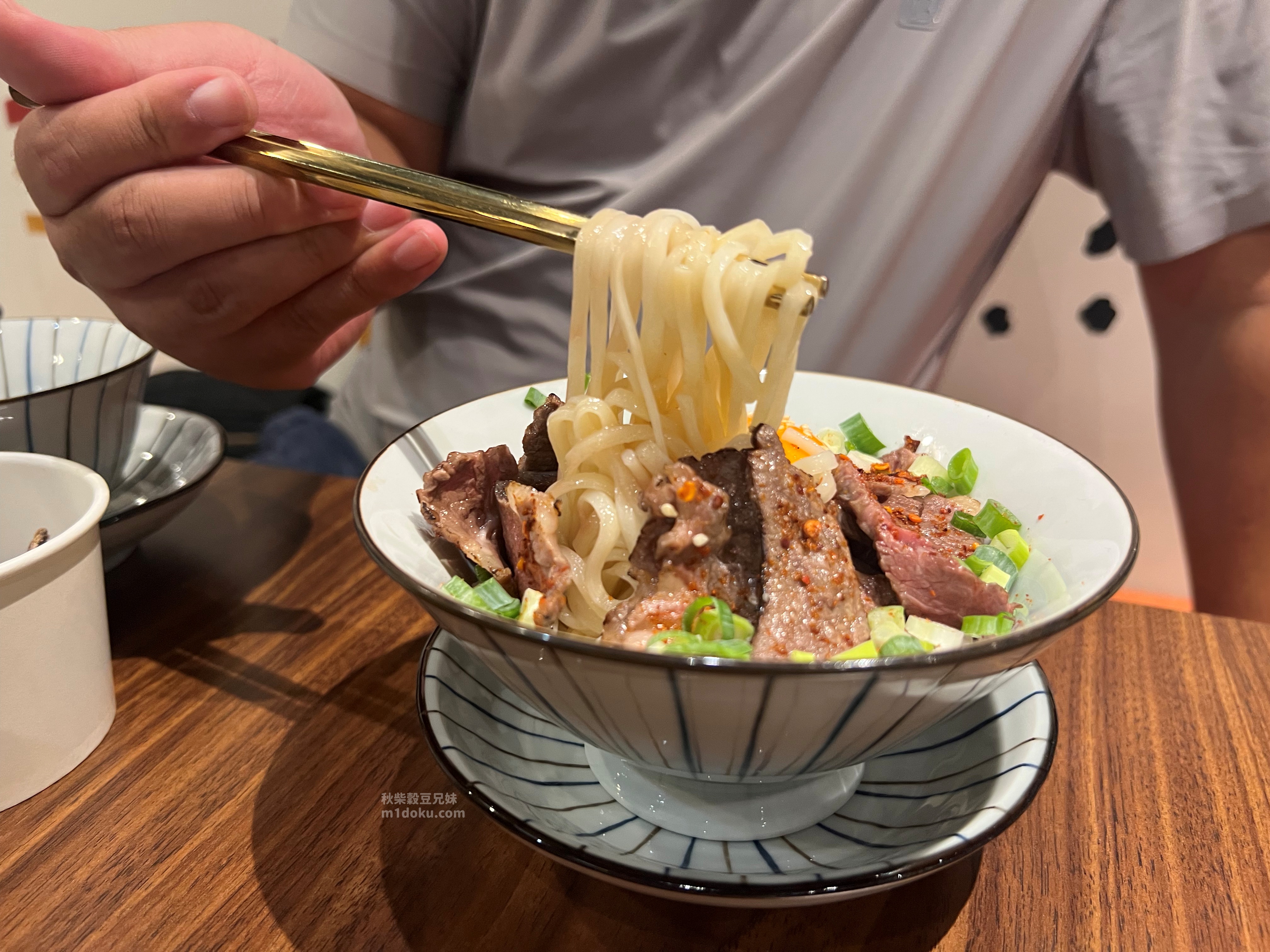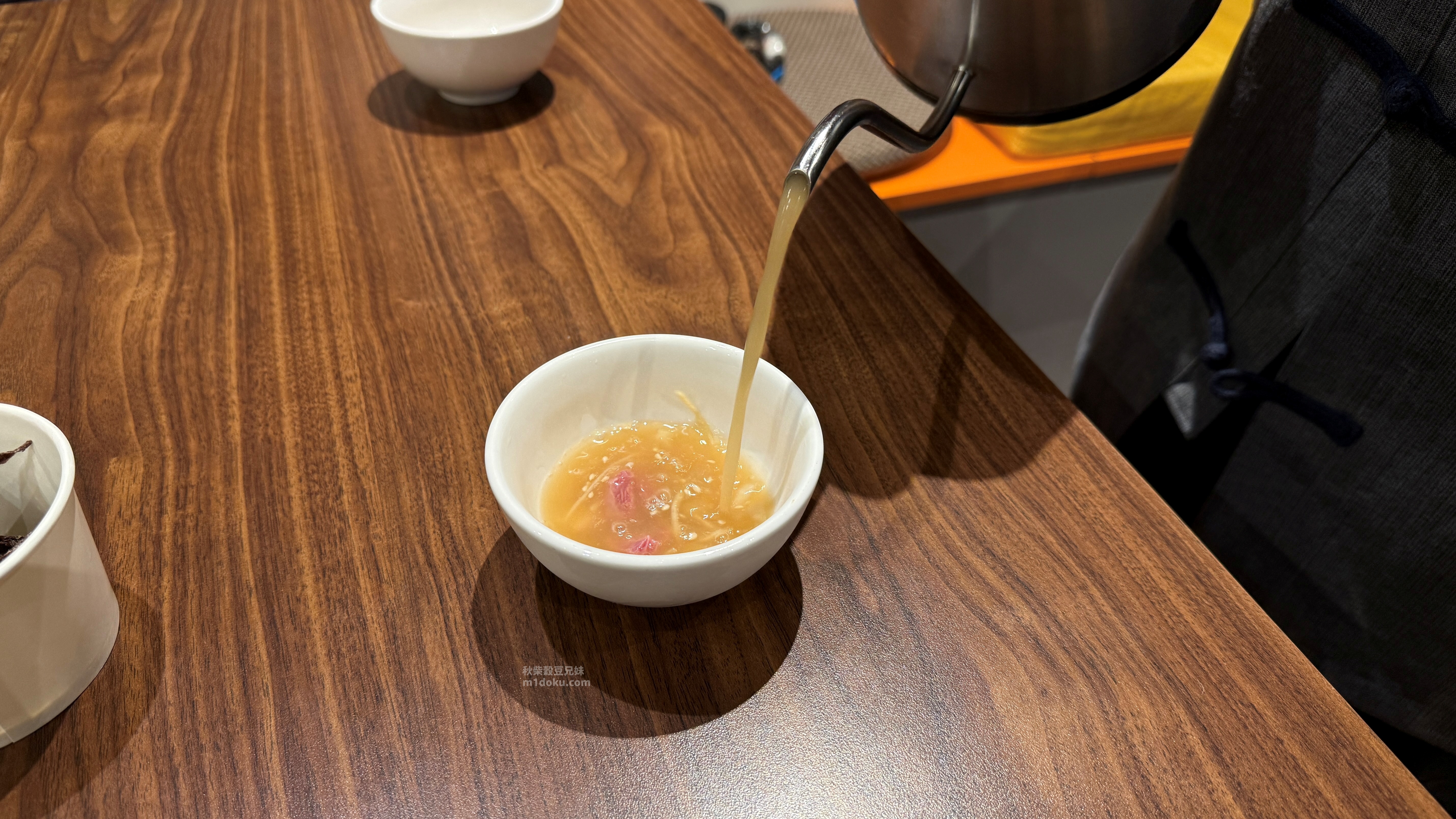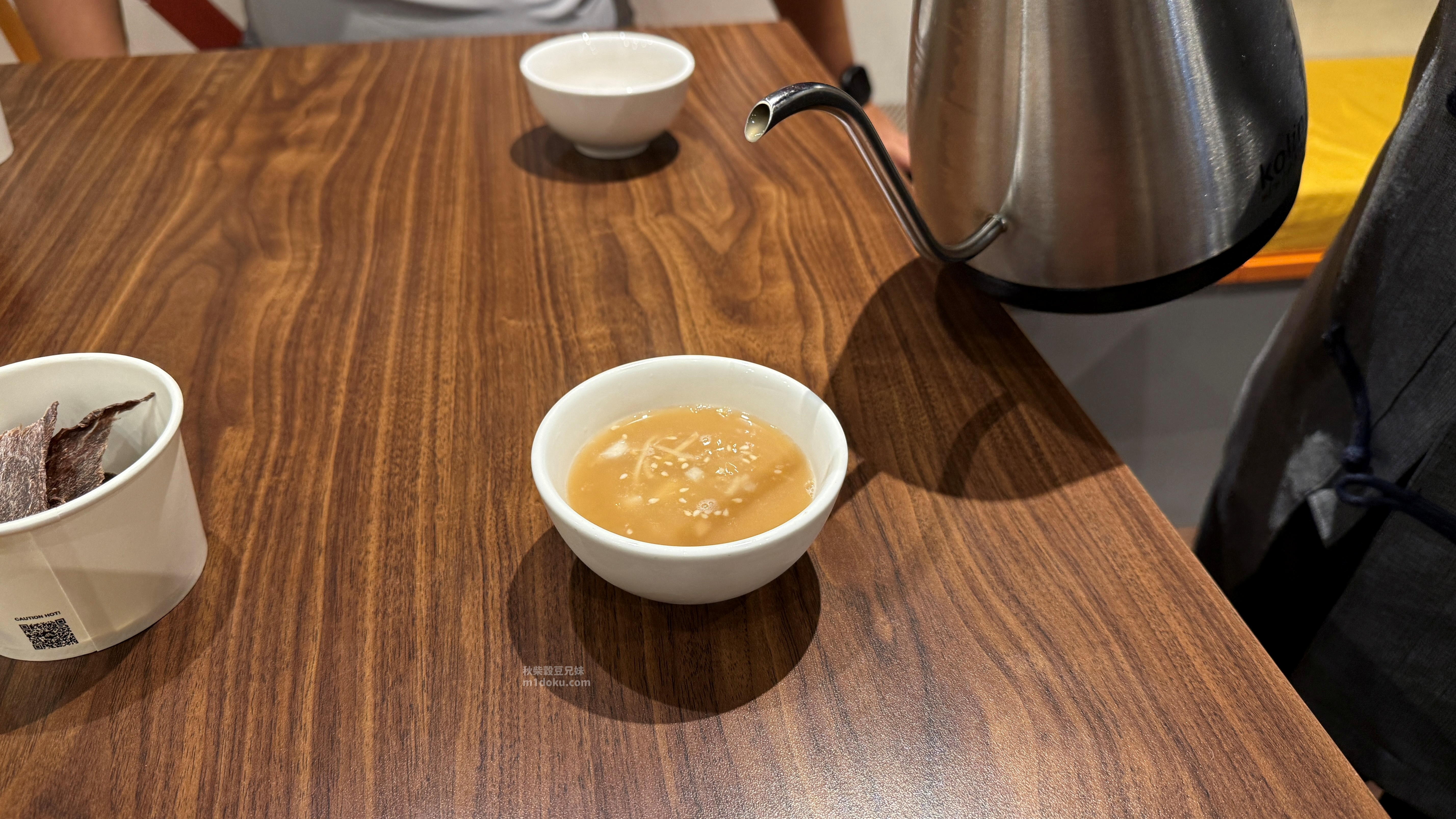 剛坐下沒多久,店員就送上一碗手沖牛肉湯,現場熱沖的畫面再加上牛肉的鮮甜在湯裡散開,首先感受原味的鮮甜口感,還可以添加米酒,提升牛肉的鮮甜味之外還能夠去除腥味,有另一種層次的感覺。喝起來整個心和胃都暖起來了,也瞬間開胃了(笑)