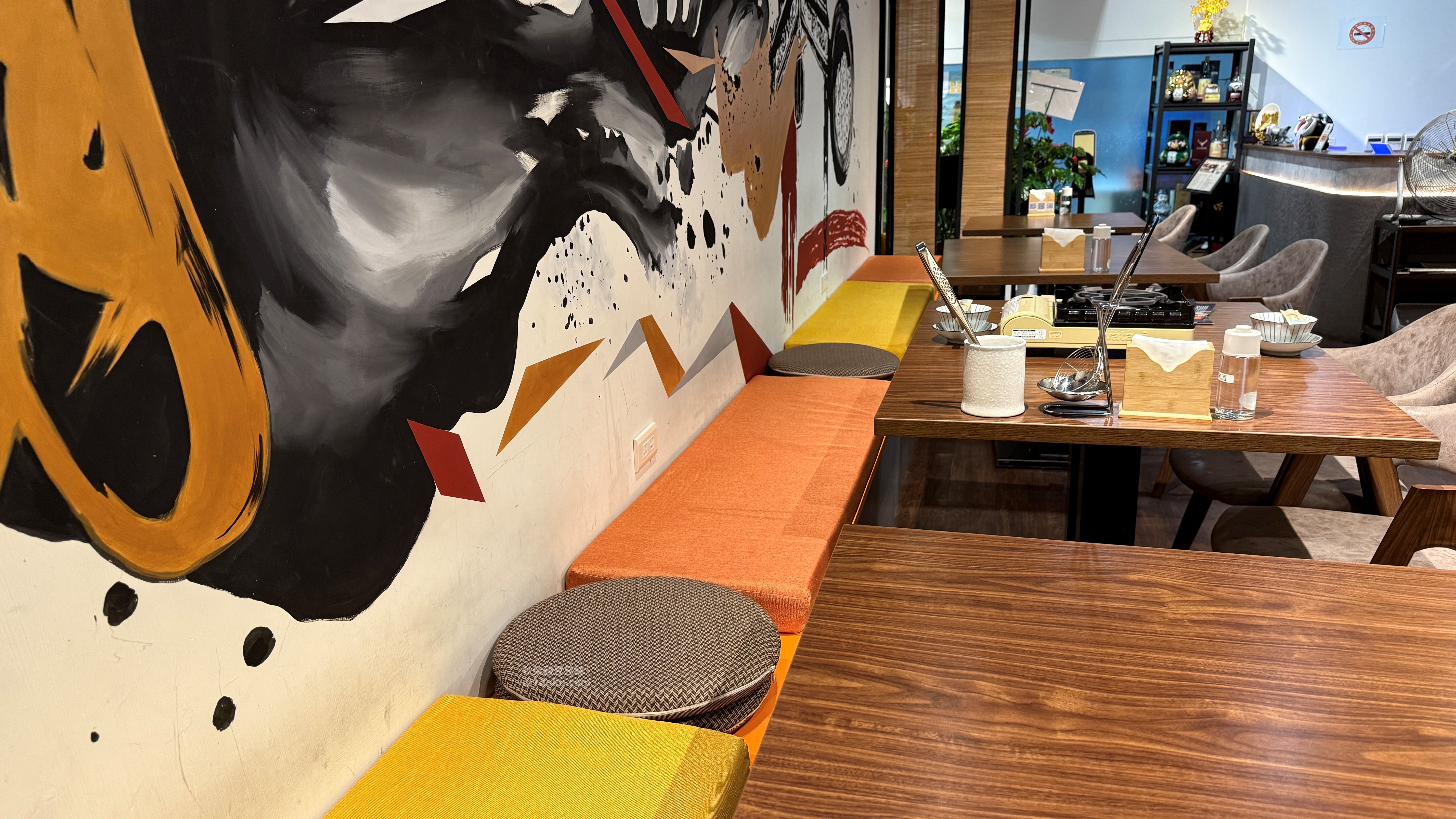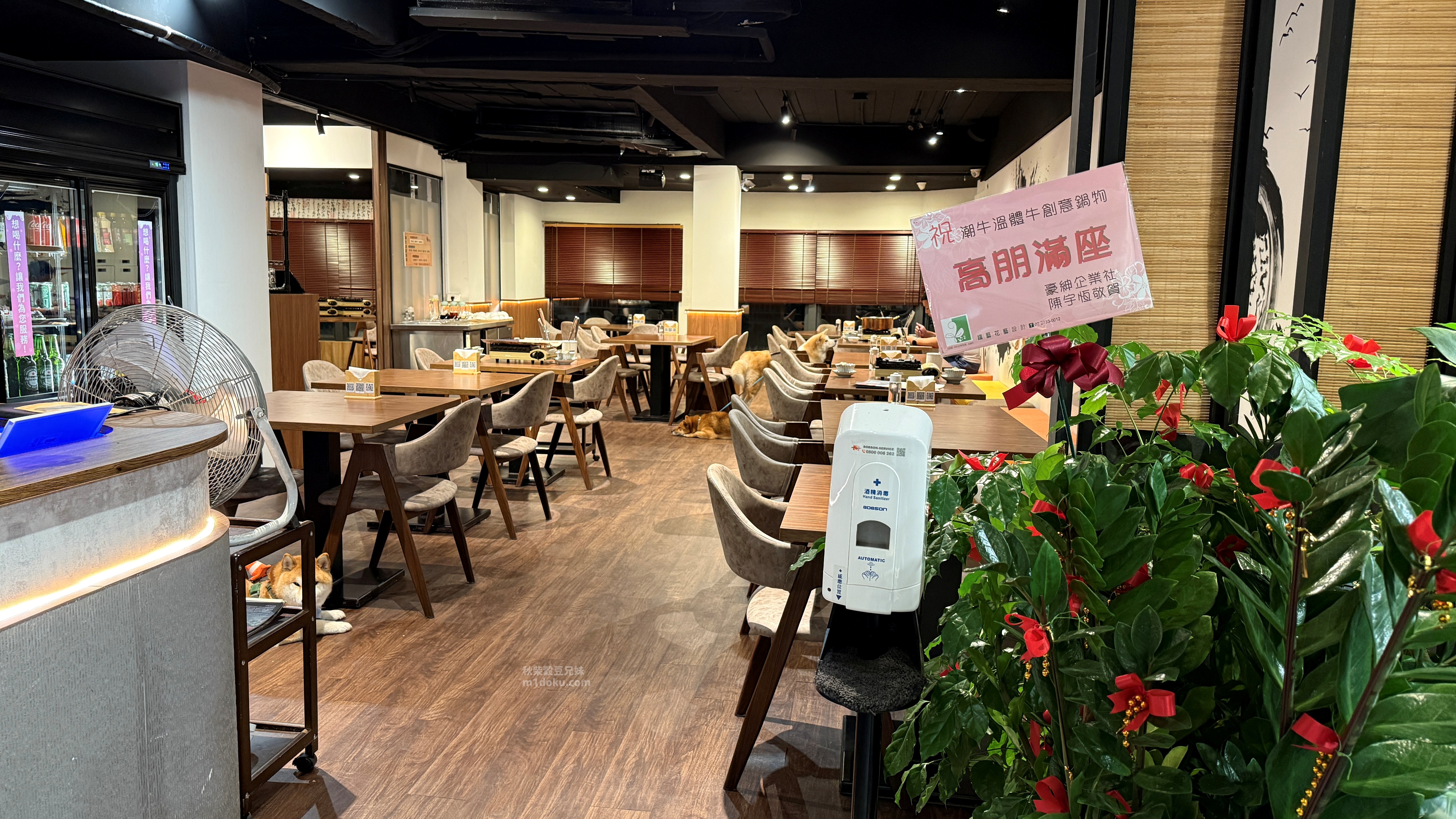 隱身在台北民生社區剛開幕沒很久的潮牛殿溫體牛創意鍋物,斜對面就有圖書館的地下停車場,停車場旁還有一個小公園,在要進店享用前可以先帶毛孩到小公園放風散步一下。一進店裡視覺就被那種溫暖跟放鬆感包圍。用餐環境舒適寬敞,還有包廂區耶,很適合多人多狗聚會。店裡有超可愛的店狗—阿迪店長,好像還有另一隻店狗,當天沒有出現。寵物牽繩就可以落地,上椅只需要穿禮貌帶就可以了哦,對狗狗整個超級友善,真的好加分(大心)。
