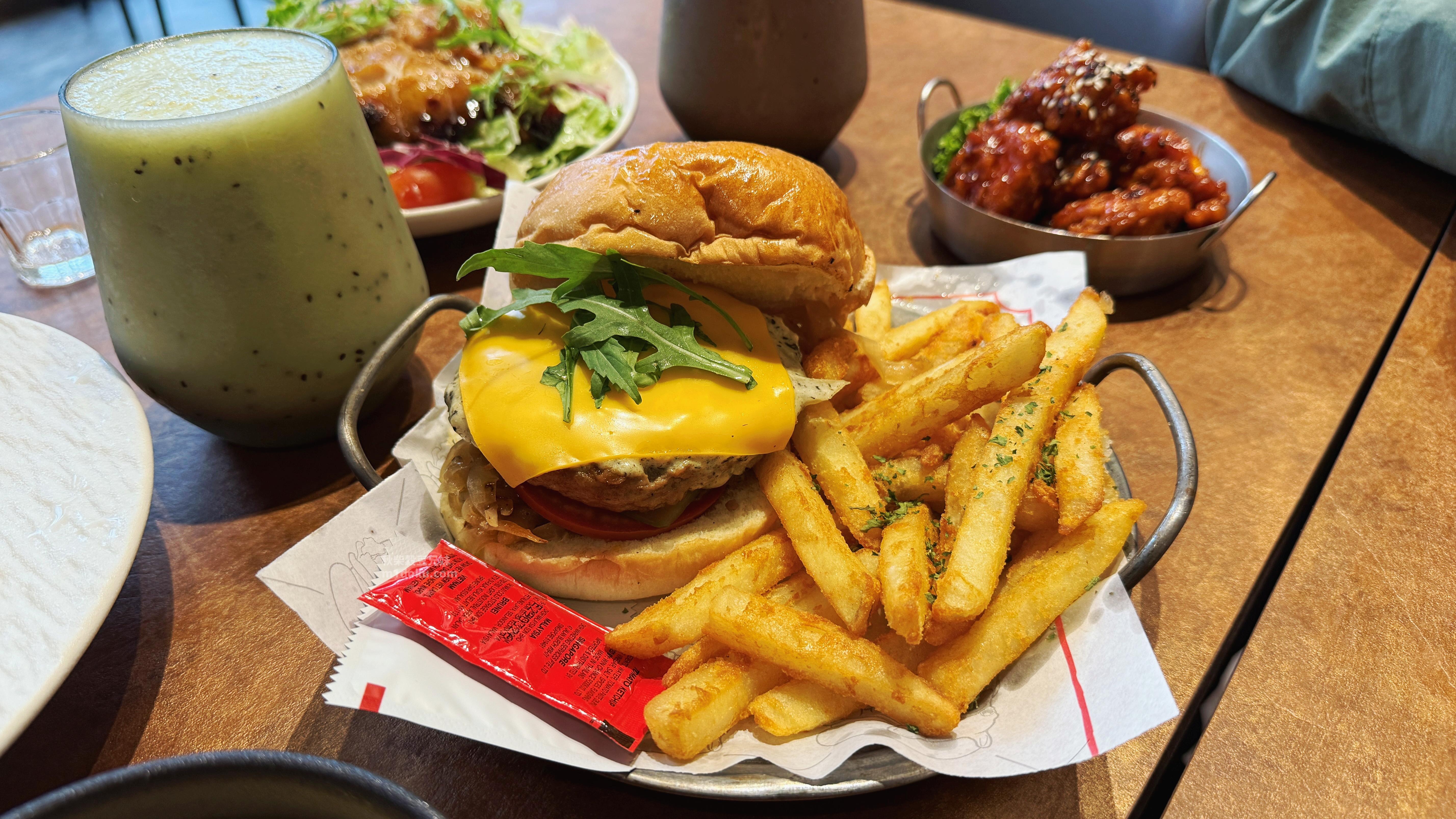 (漢堡內肉排及蔬菜、起司配料相當滿!奶香味十足,整顆漢堡吃起來超有飽足感!超級飽的那種!)
