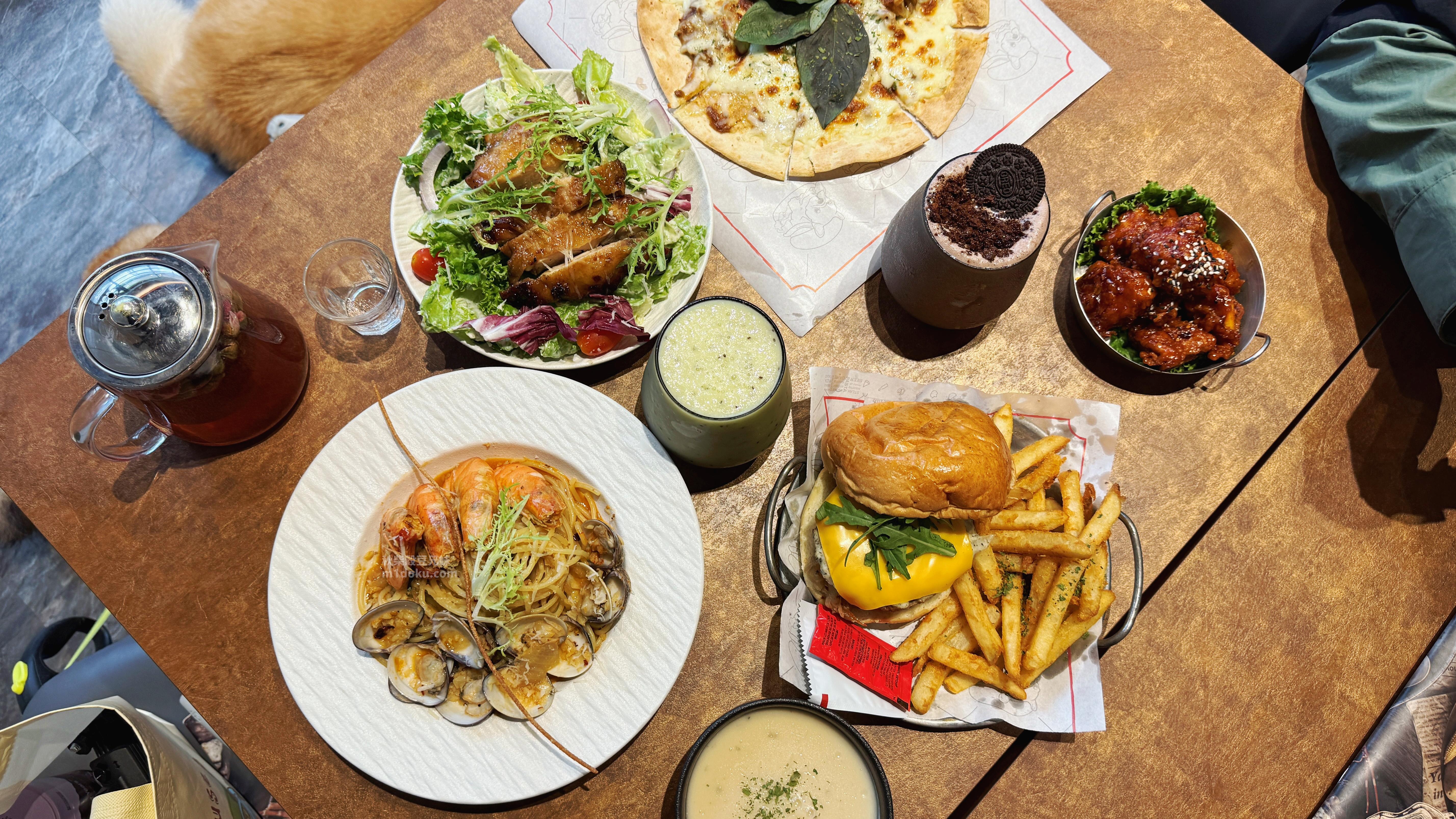 Eat enjoy意享美式廚房呈現相當道地的美式風格,店內用餐很有氣氛,主推美式漢堡、義大利麵、燉飯及披薩,且還有早午餐和下午茶呢!有著適合多人享用的雙人、三人、四人套餐,價格的部分以美式餐廳來說算平價,CP值相當高,餐點相當豐富多元又美味,份量超級澎派!他們家的千層蛋糕相當著名,說是被美式餐廳耽誤的甜點店一點也不為過(大笑)最棒的地方是,Eat enjoy意享美式廚房是一家寵物友善餐廳💯,毛孩們在這邊也有餐點可以享用呢💕