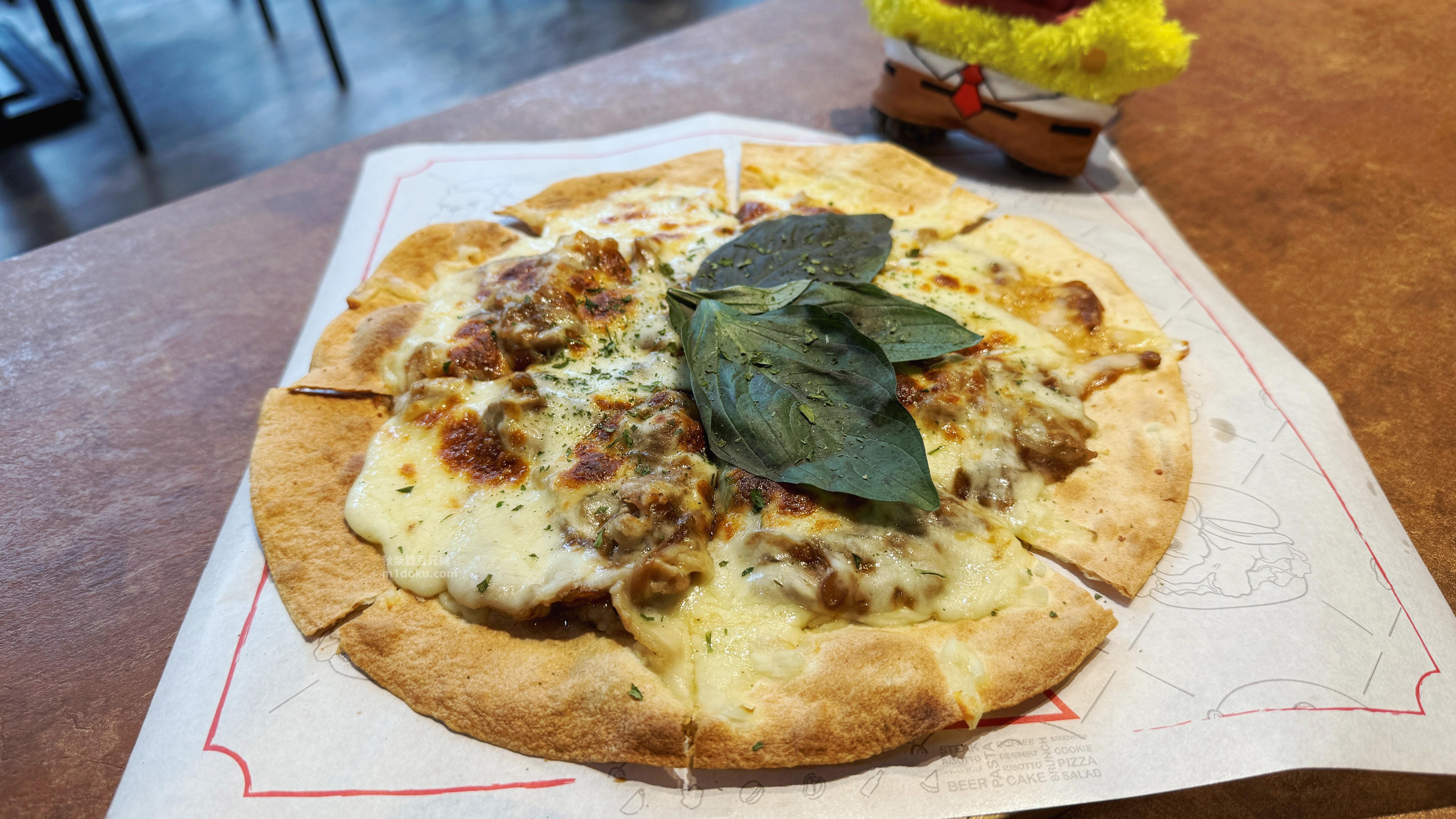 (我個人最喜歡這道披薩,吃起來有一點甜味,醬燒味很足,吃進嘴裡可以感受到滿滿的肉及起司,搭配一點餅皮的香氣及嚼勁)