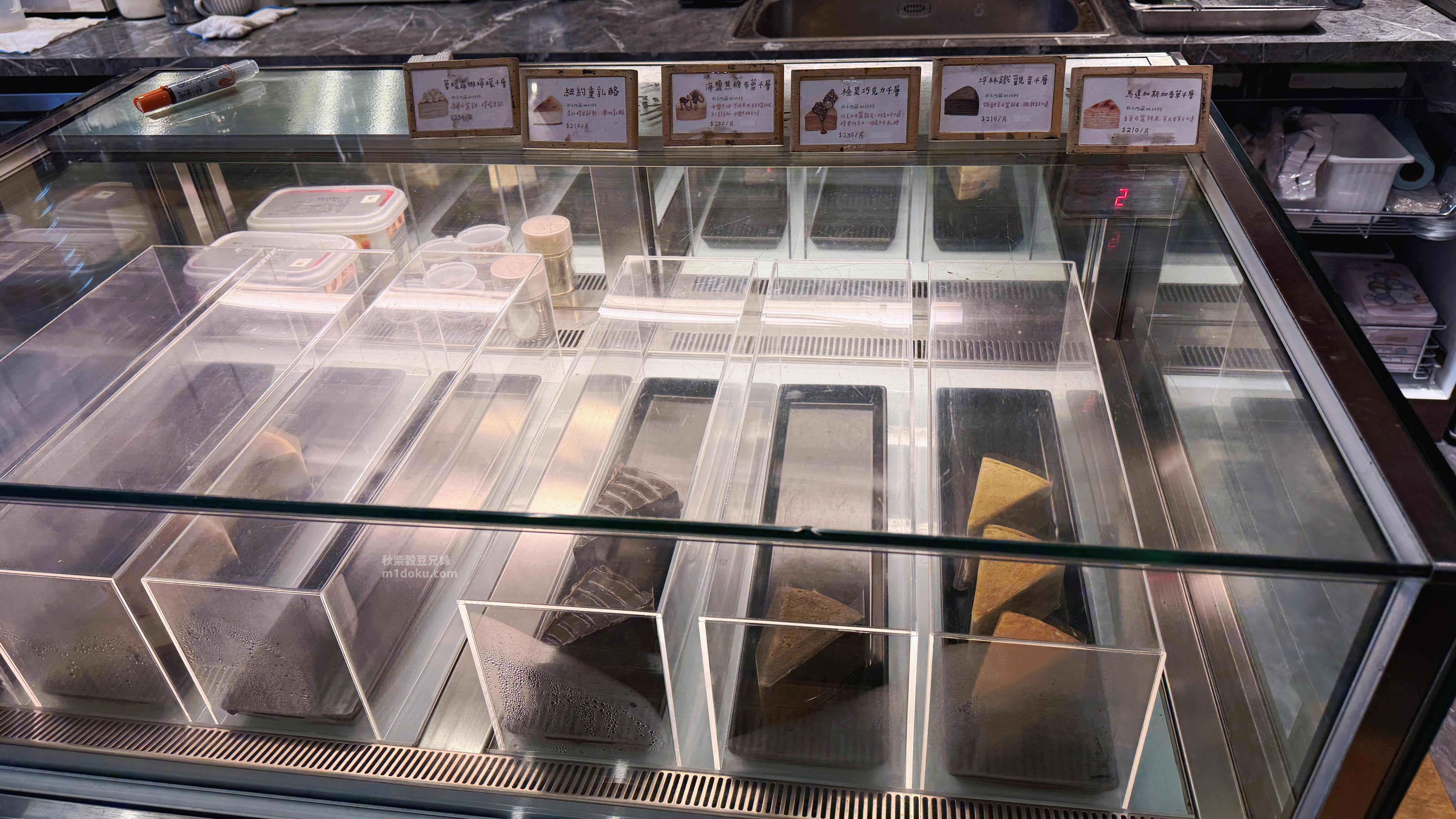 飯後一定要留點胃給甜點。展示櫃裡的千層蛋糕一排排超級療癒,因為每一款看起來都好好吃哦,選擇障礙的我們選了四種不同口味的蛋糕,一次享受多種味蕾的饗宴。