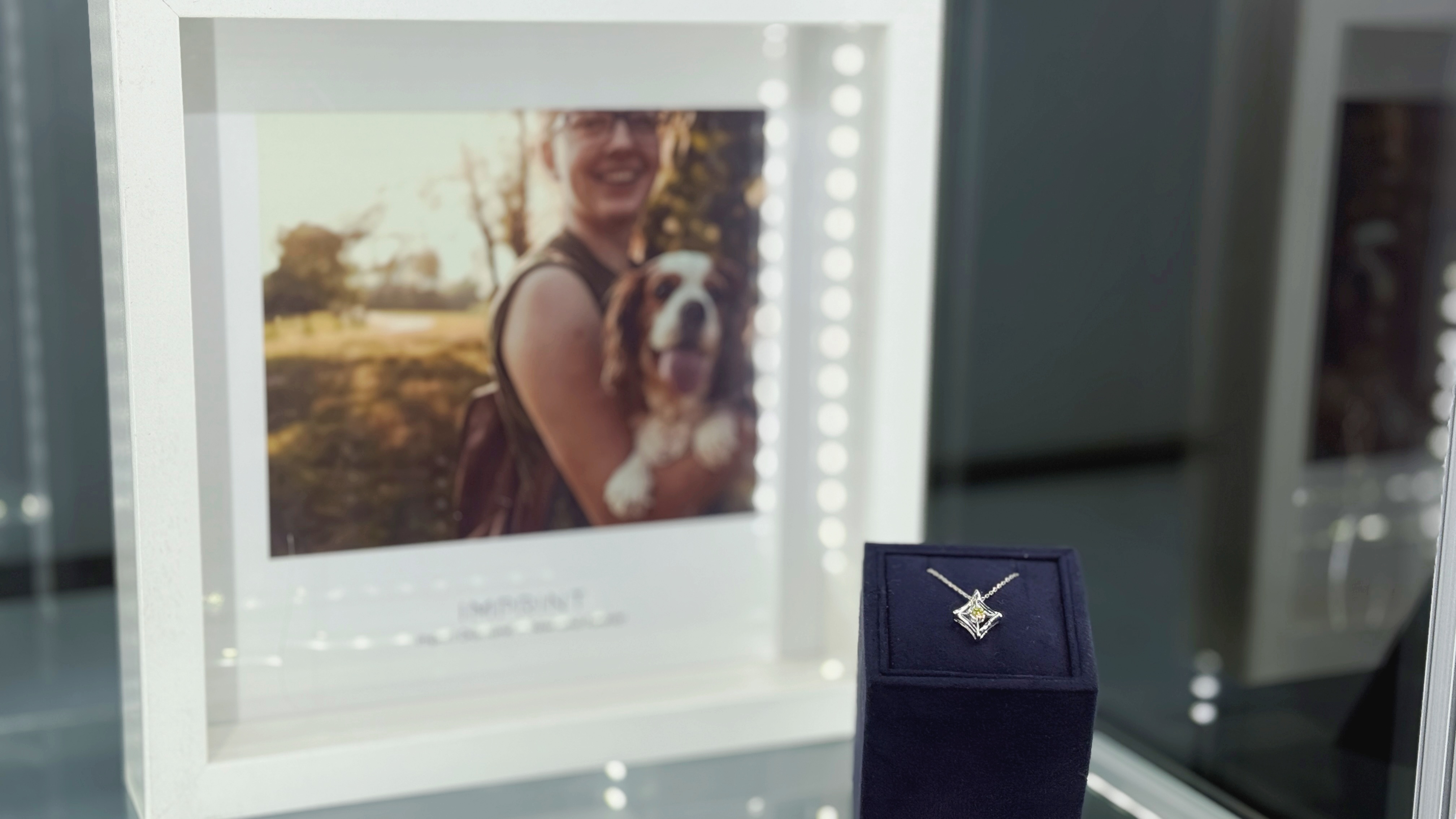 在這樣的情緒底下,我無意間看到了「銘印鑽石 Imprint Diamond」的介紹。那是一個能將毛孩的毛髮或骨灰化為真實存在的鑽石的地方,看完介紹之後感到相當有興趣,於是我特地預約了前往他們的門市。