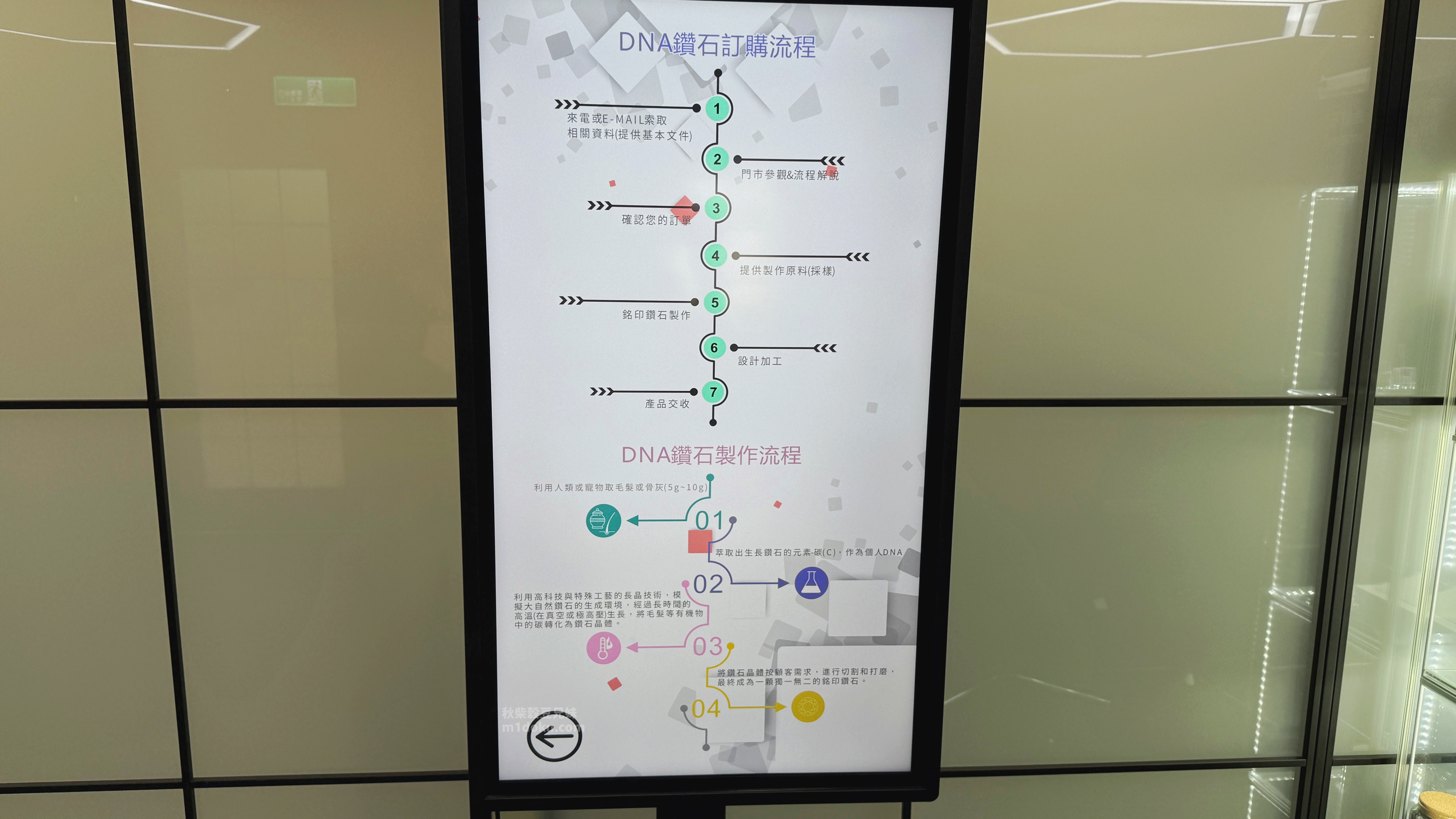 鑽石培育的全程會記錄成培育影像,真實透明,製作專屬「影音紀念盒」,從收件到成品,約三個月。除了在門市確認哪些戒台可以選或能製成什麼飾品之外,服務人員還帶我們直接前往培育的實驗室參觀,能夠直接看到從一開始的毛髮逐漸培育成鑽石的模樣,完全公開透明能夠讓人相當安心且信任,那個過程讓人相當的感動,期待著專屬自己獨一無二的毛孩鑽石!