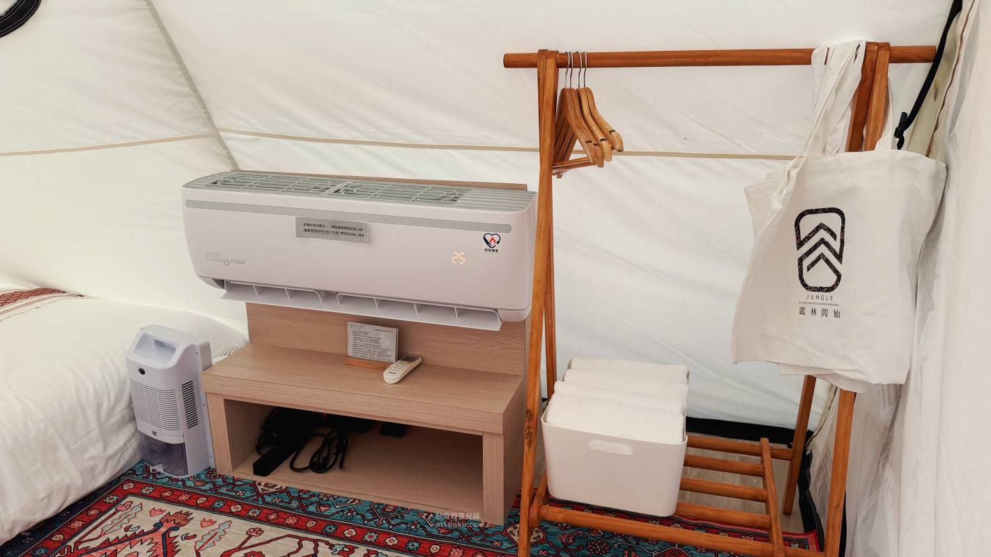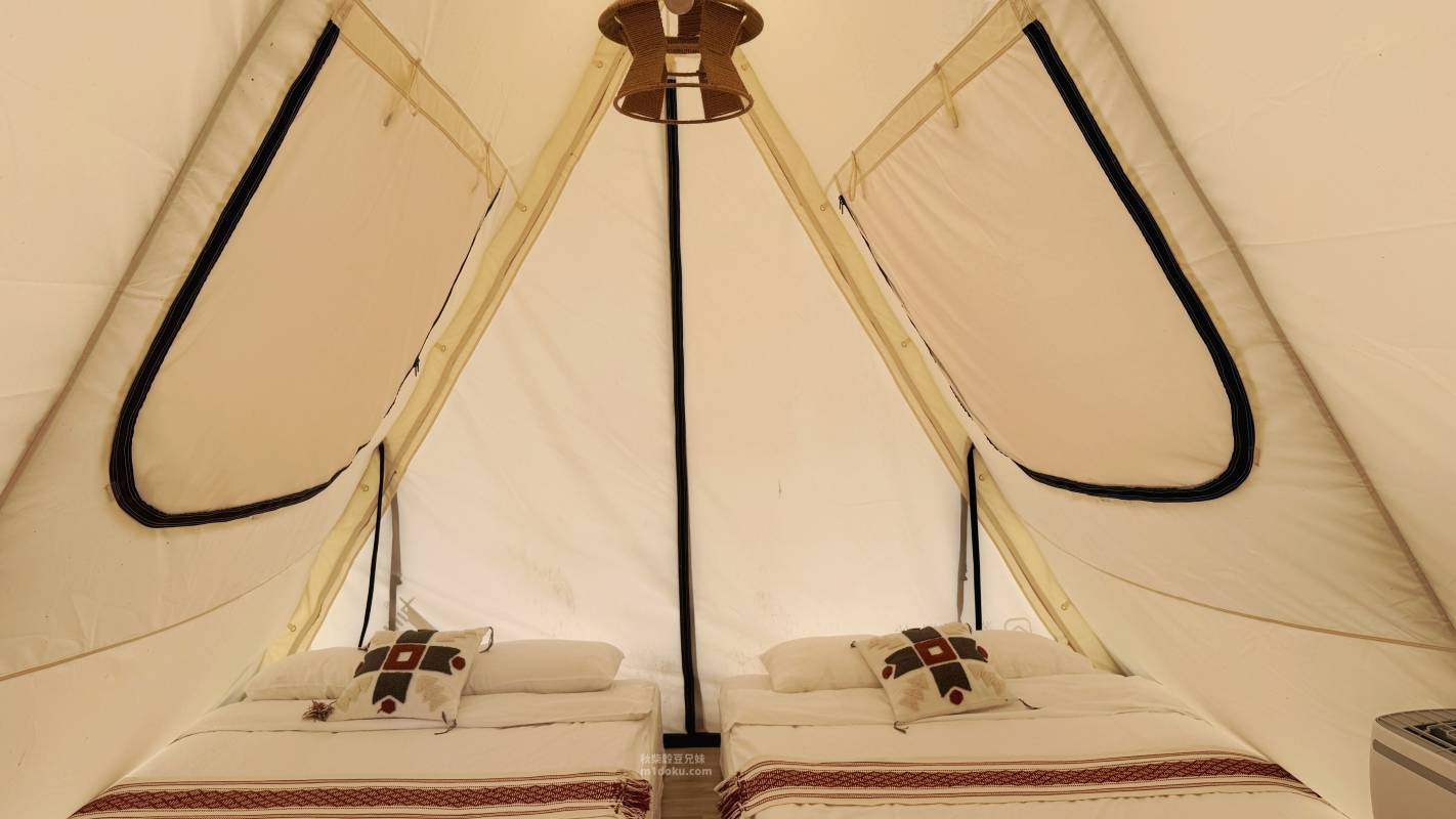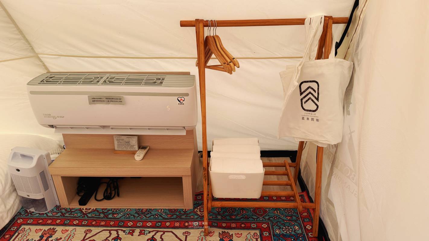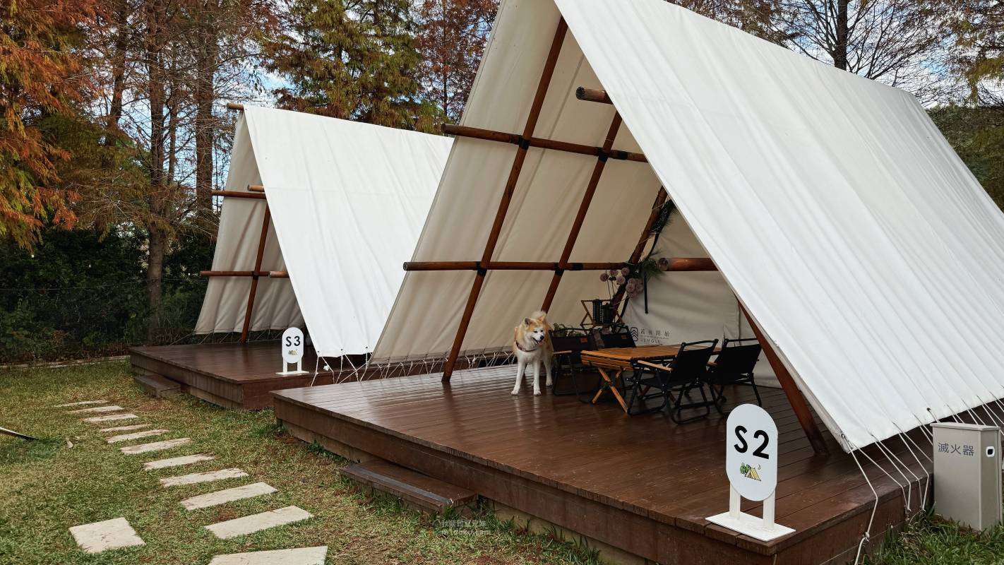 整個營區內有20帳,分別為南洋叢林風及花語叢林風,另外有一區圍起來的是寵物友善區,是一個有3帳篷包圍起來的一個獨立柵欄區,毛孩能夠自由活動伸展筋骨,好自在呀!營區整體環境很清幽、乾淨,草皮養護得很好,讓整體看起來很輕鬆!波西米亞風格的帳篷超好拍,帳篷內挑高空間也很舒適!帳篷內鋪設很舒服的地毯,還有冷暖氣跟衣架!每個帳篷可以入住2-4人,帳內空間算是很寬敞,行李攤開也不會擁擠。公共衛浴間有提供盥洗用品(洗髮精、沐浴乳、棉花棒、吹風機、護墊等),洗澡只要帶換洗衣物跟毛巾就好了,相當方便,熱水也很快就來了,水量也滿大的。