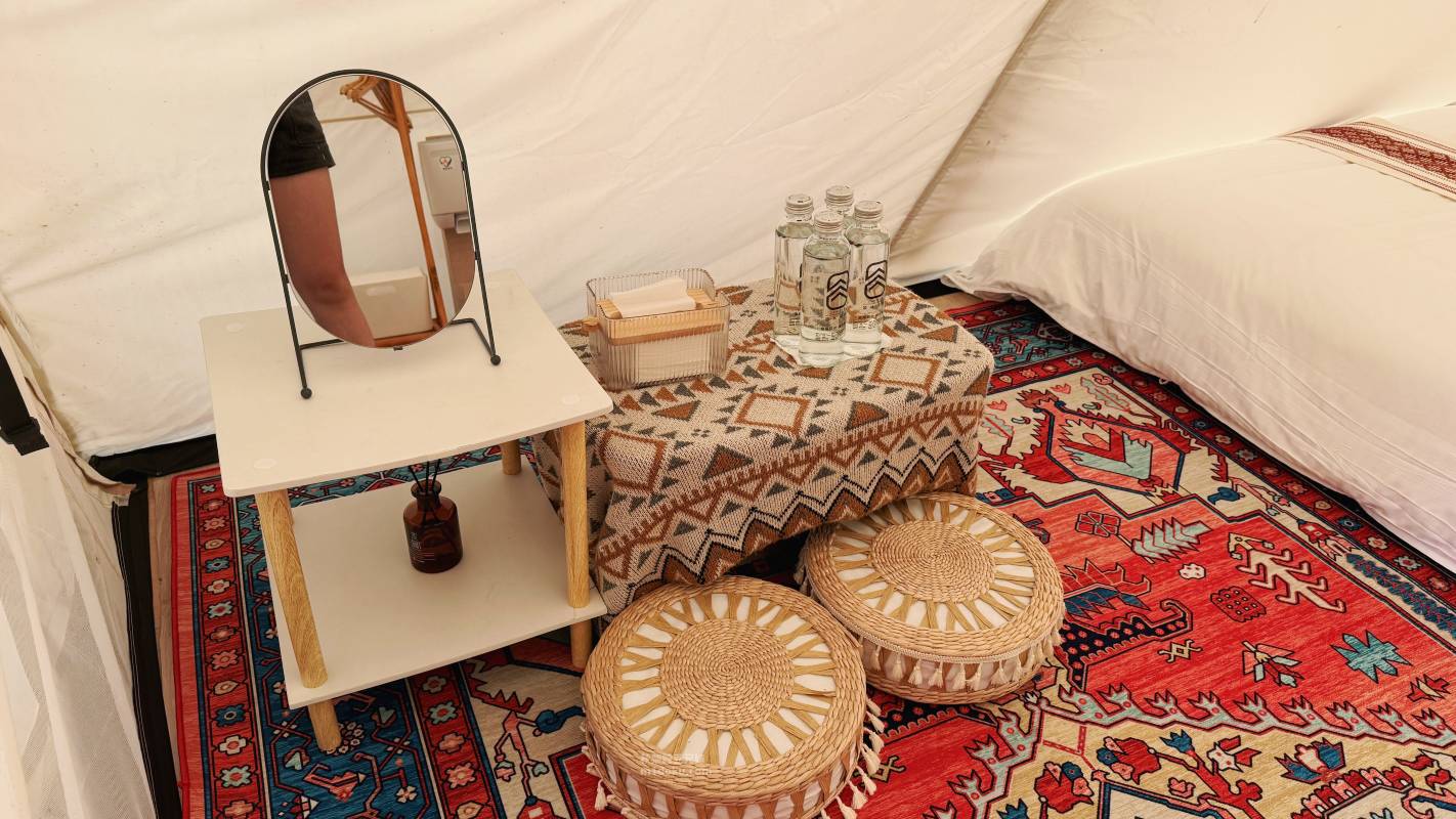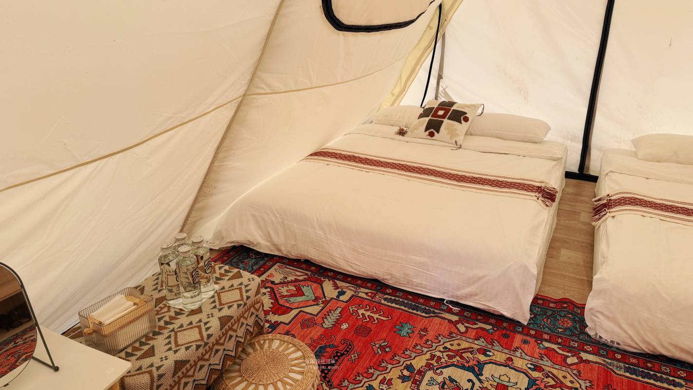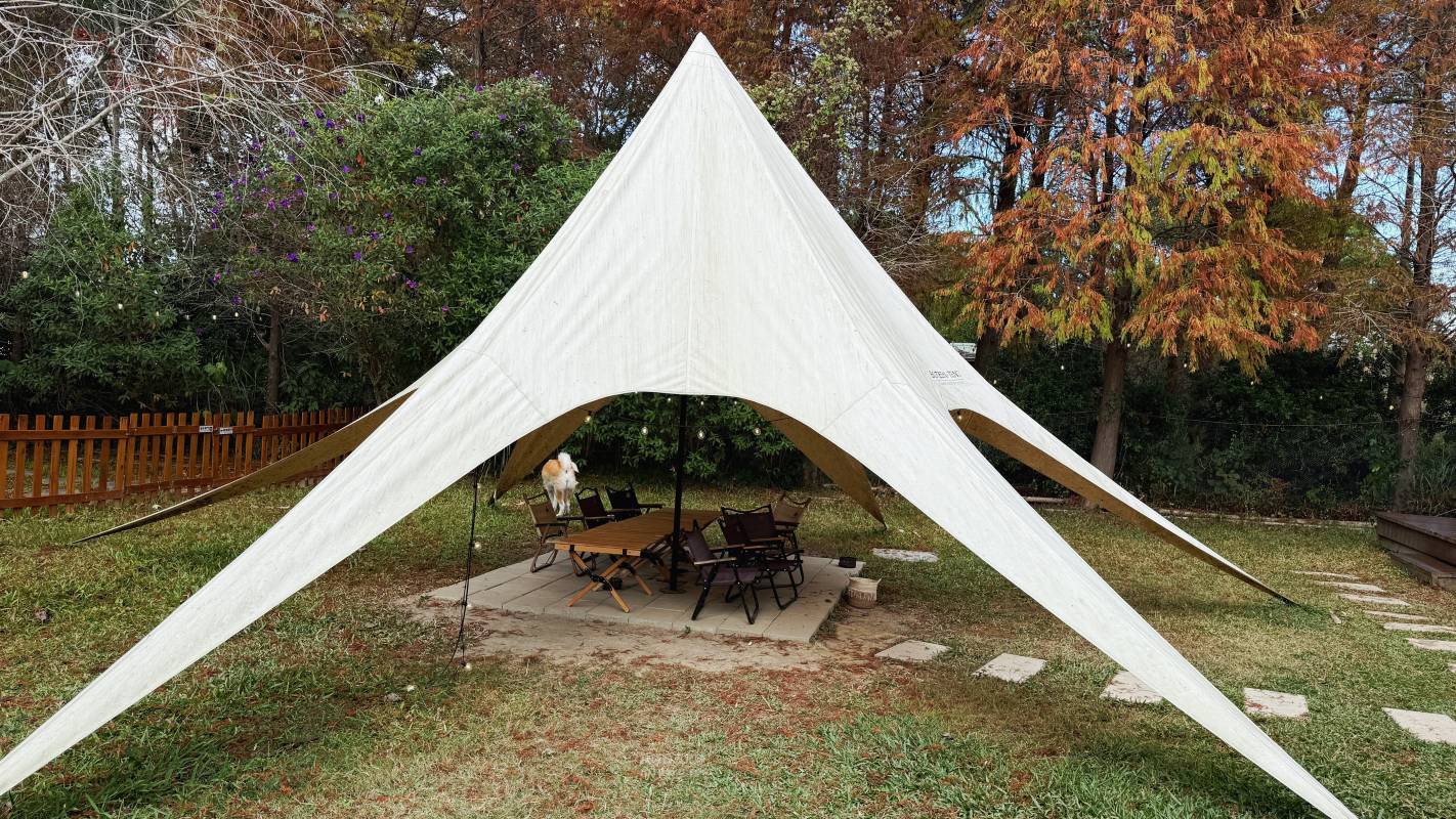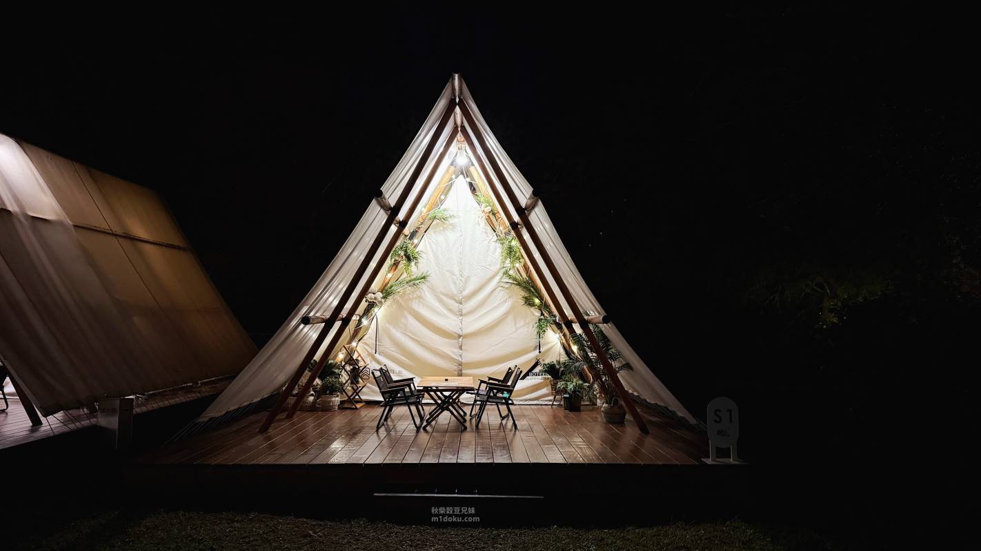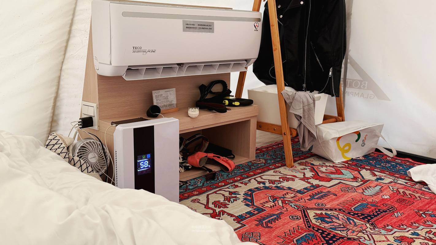 整個營區內有20帳,分別為南洋叢林風及花語叢林風,另外有一區圍起來的是寵物友善區,是一個有3帳篷包圍起來的一個獨立柵欄區,毛孩能夠自由活動伸展筋骨,好自在呀!營區整體環境很清幽、乾淨,草皮養護得很好,讓整體看起來很輕鬆!波西米亞風格的帳篷超好拍,帳篷內挑高空間也很舒適!帳篷內鋪設很舒服的地毯,還有冷暖氣跟衣架!每個帳篷可以入住2-4人,帳內空間算是很寬敞,行李攤開也不會擁擠。公共衛浴間有提供盥洗用品(洗髮精、沐浴乳、棉花棒、吹風機、護墊等),洗澡只要帶換洗衣物跟毛巾就好了,相當方便,熱水也很快就來了,水量也滿大的。