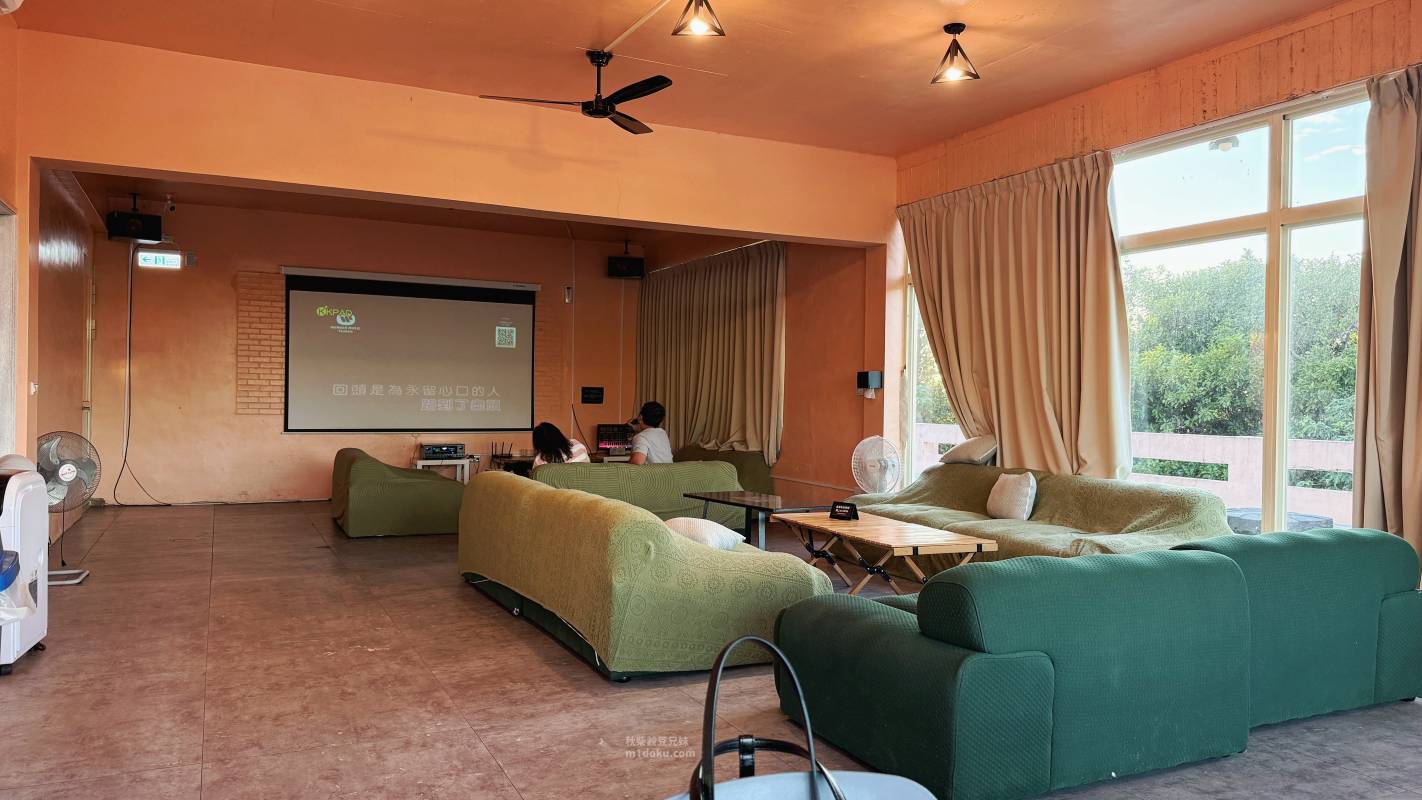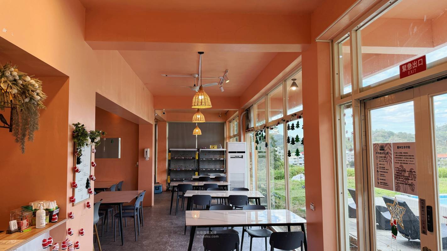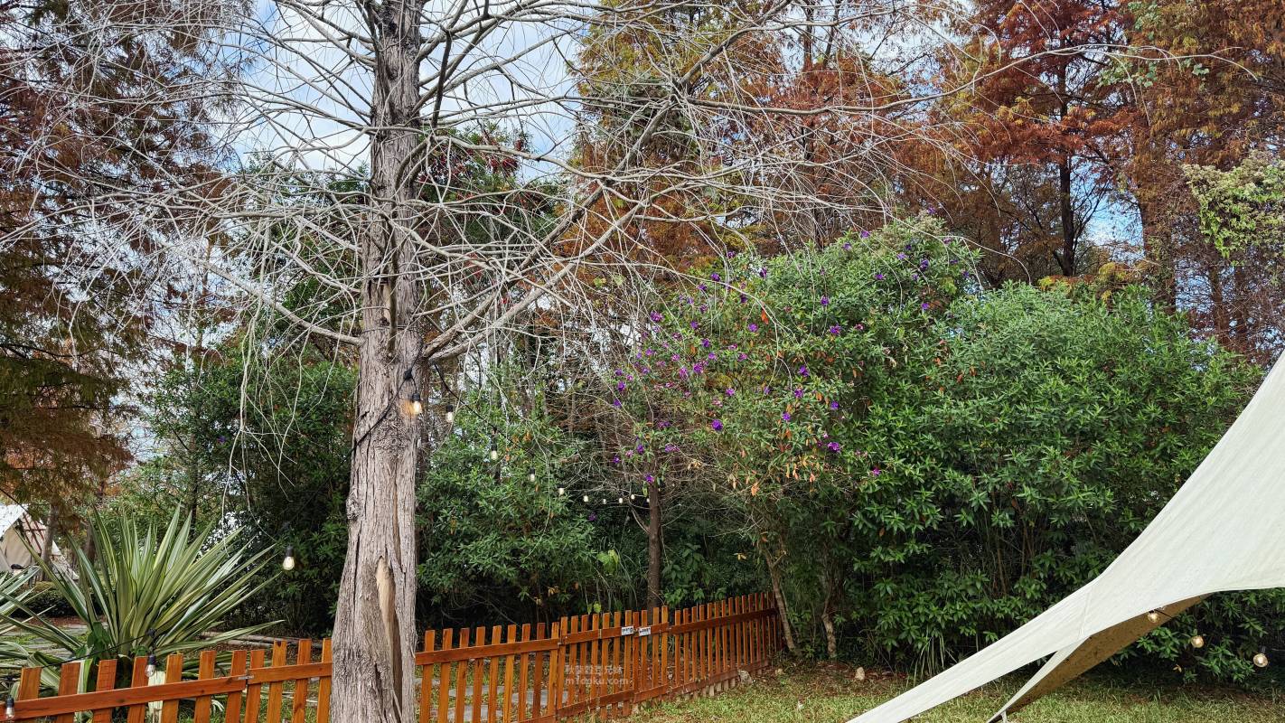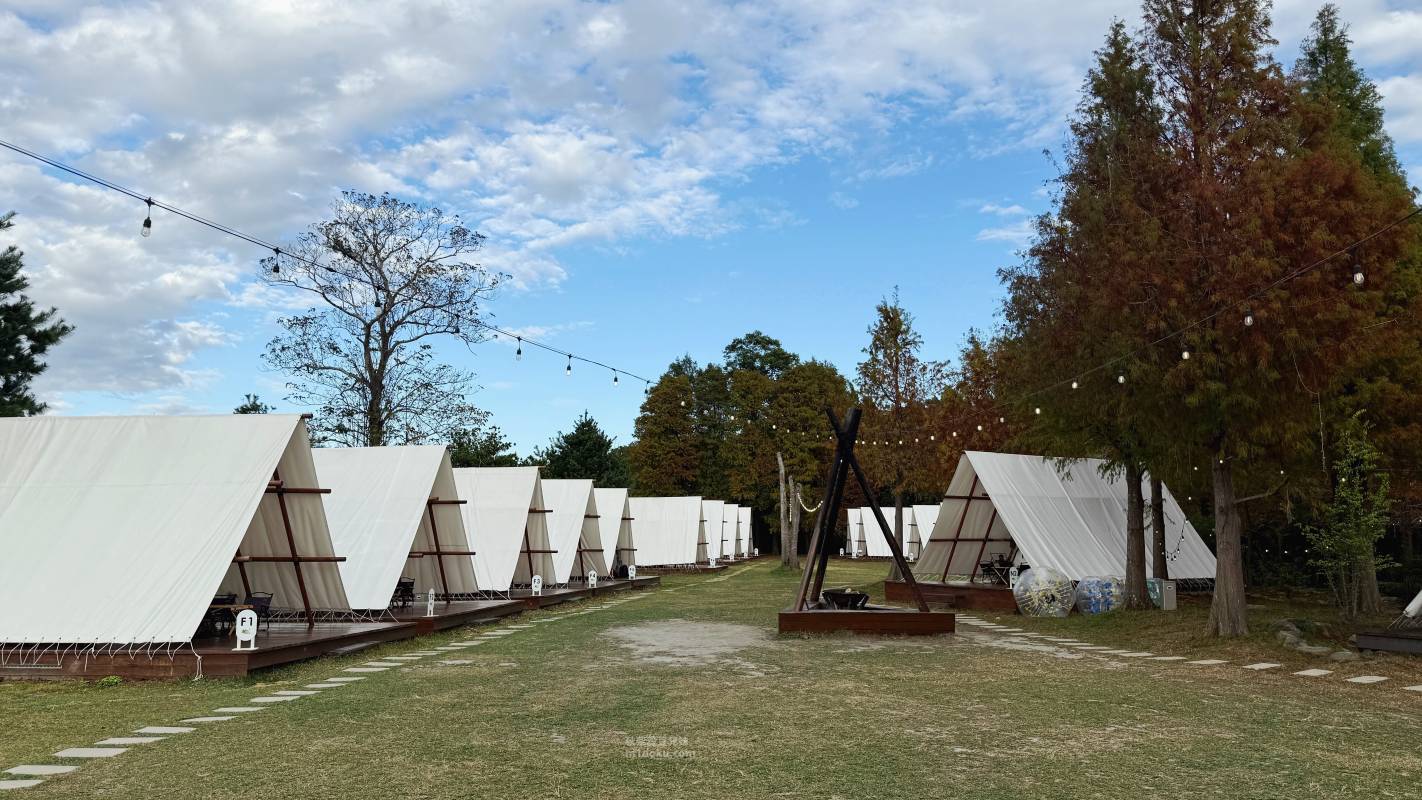 叢林開始Glamping-苗栗店交通算是相當便利,距離頭屋交流道只需要約5分鐘的車程!整個營區相當漂亮,非常有度假氛圍,落羽松剛好盛開非常美麗,園區內有位置可以免費停車。整個營區不算大,餐廳及櫃檯是一棟兩層樓的橘紅色建築物,除了是餐廳和櫃檯之外,還有吧台哦!二樓是多功能活動中心,有著KTV可以唱歌以及電動麻將桌可以使用。整個園區只有兩處吸菸區,有吸菸的人要注意哦!建築物前有一座網美戲水池,往遠處看能夠一眼盡收山嵐美景,相當舒適!
