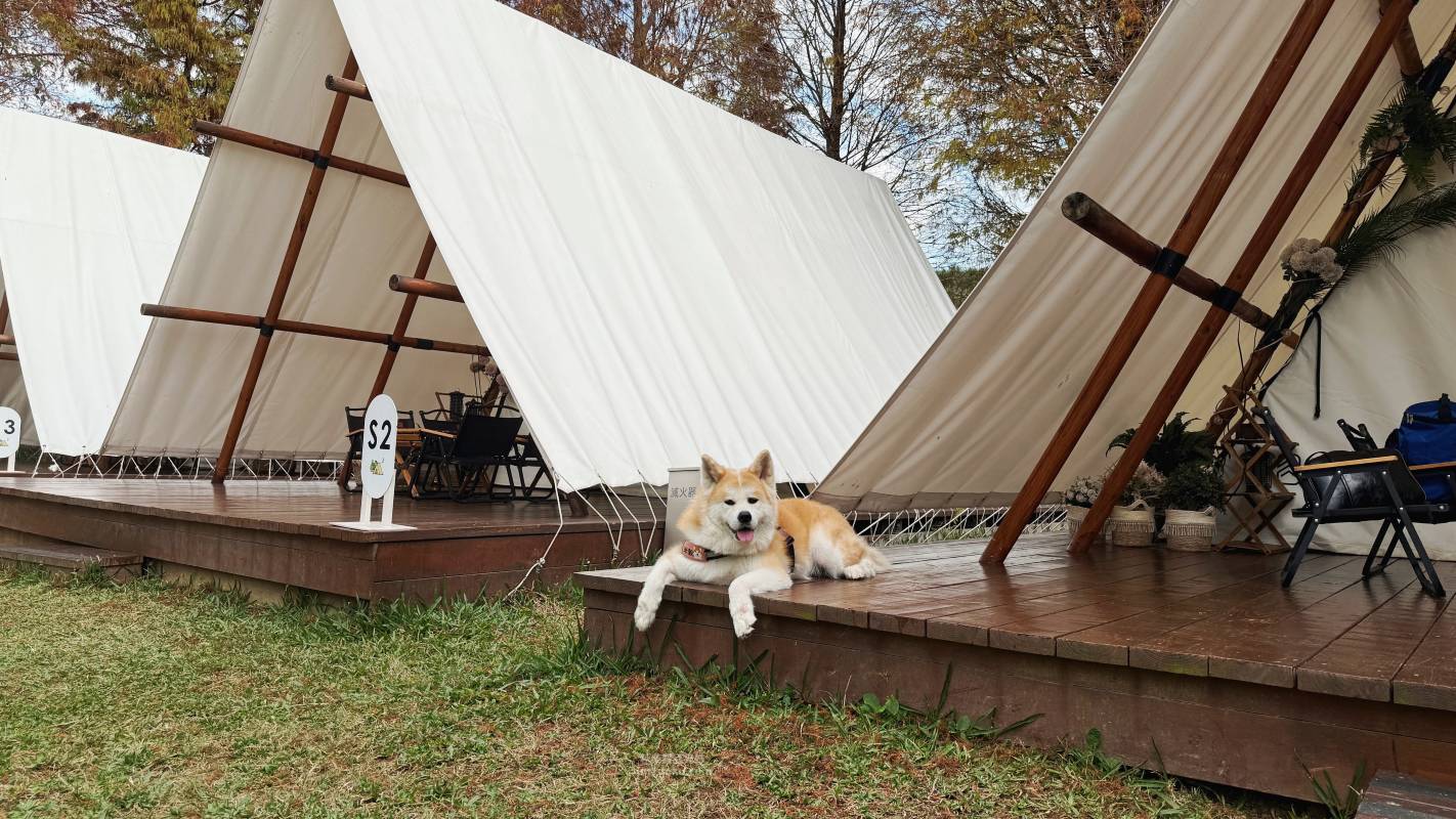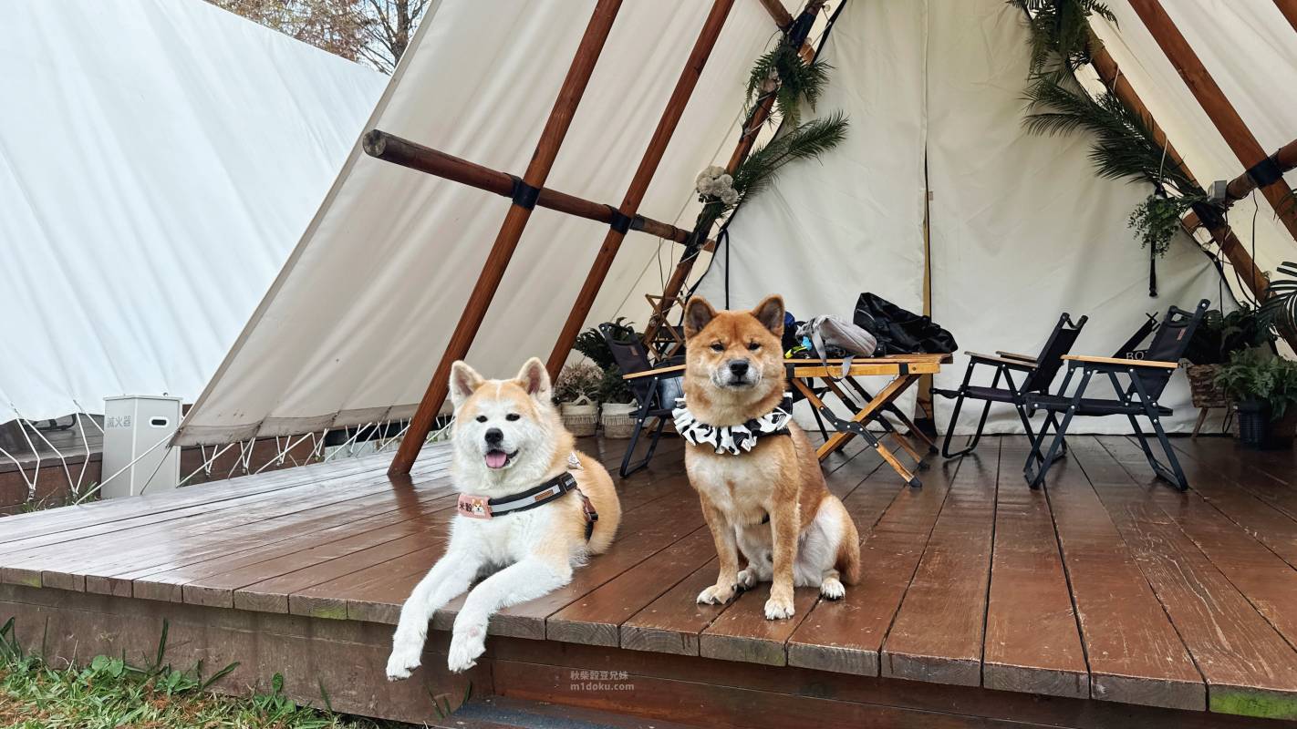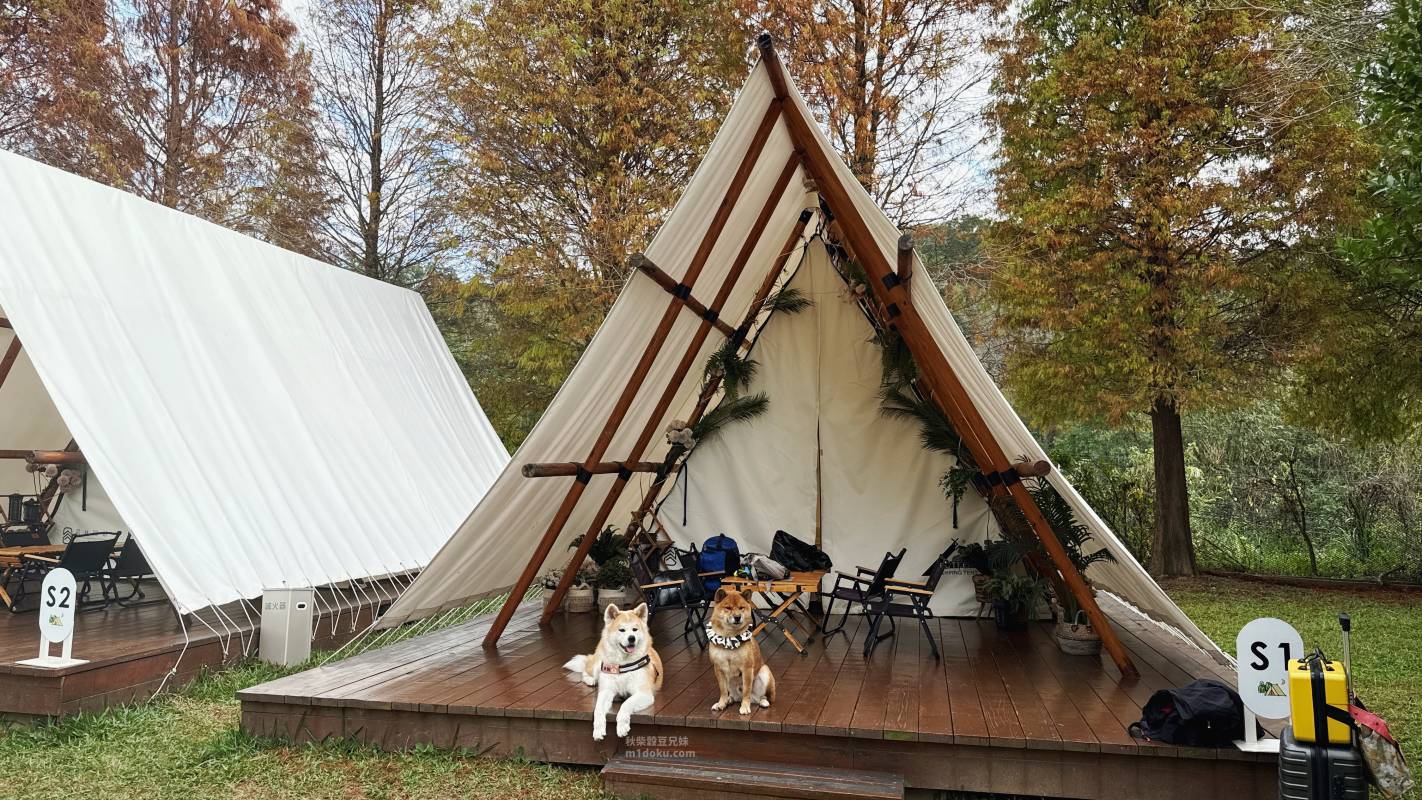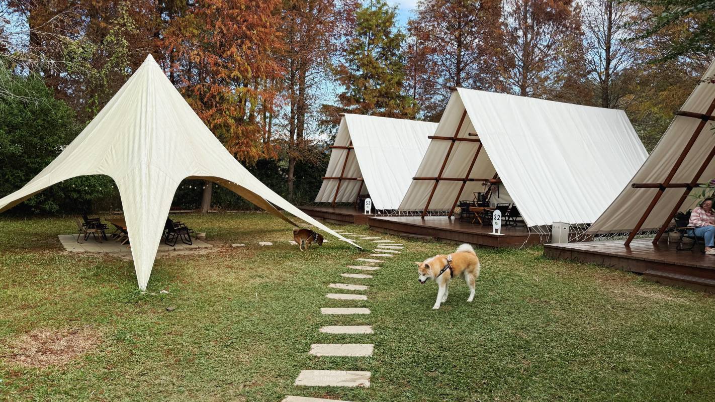 叢林開始Glamping-苗栗店設有寵物專區我覺得相當貼心!有柵欄圍起來不用擔心毛孩跑出去,擁有自己的小空地可以玩耍米豆和米穀相當開心!玩累了還能夠進帳篷休息(記得擦毛孩的腳腳哦!)而且最棒的地方是,毛孩能夠上床,太友善了吧!米豆和米穀一進到寵物專區就開始狂奔了,超級開心,能夠享受獨立的空間不被打擾!我們入住的當天隔壁兩個帳棚都沒有房客,直接整區包場超爽的(大笑) ▲小提醒:只有這區開放寵物家庭預訂哦!