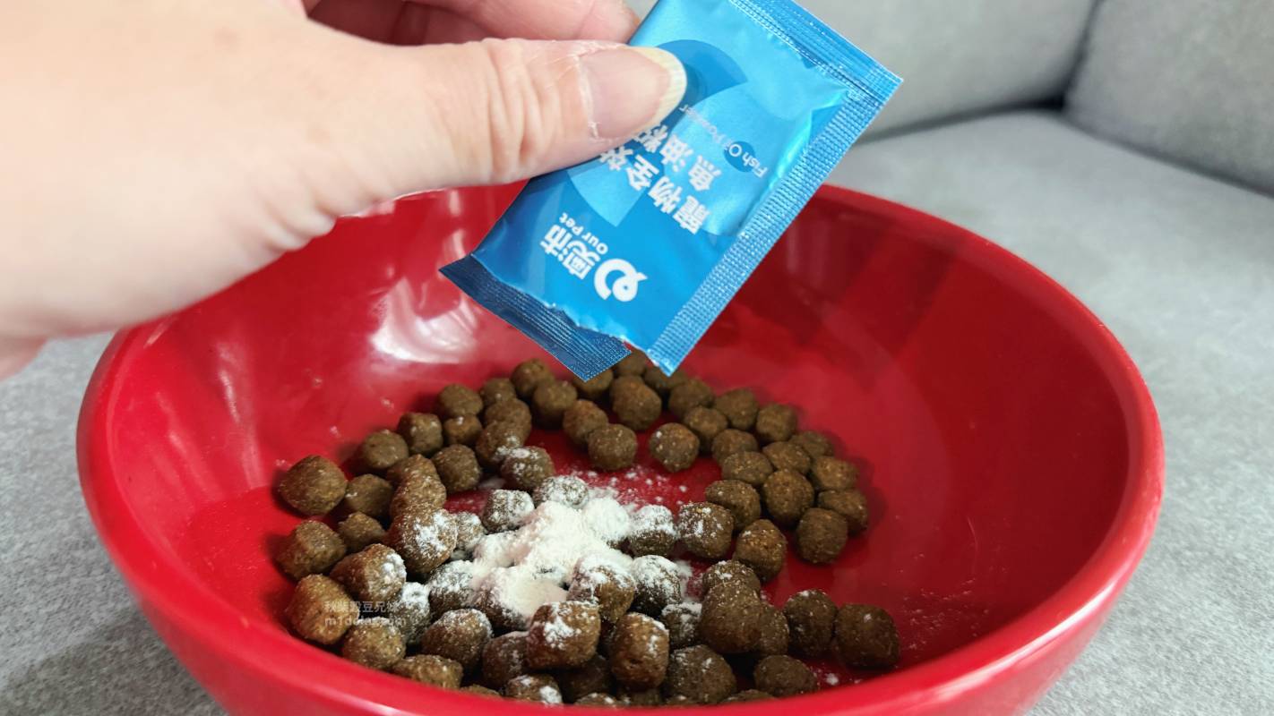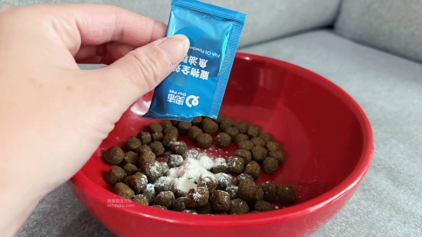 有別於以往的魚油,做成魚油粉真的很方便,也不用怕手弄到油膩膩的,又或者還要找剪刀剪破魚油膠囊,而且和其他的魚油比較起來也沒有腥臭味,米豆和米穀是真的滿喜歡的!如果你們家中也有和我們一樣的挑嘴小狗的話,那不妨試試看奧沛OurPet的寵物全效魚油粉