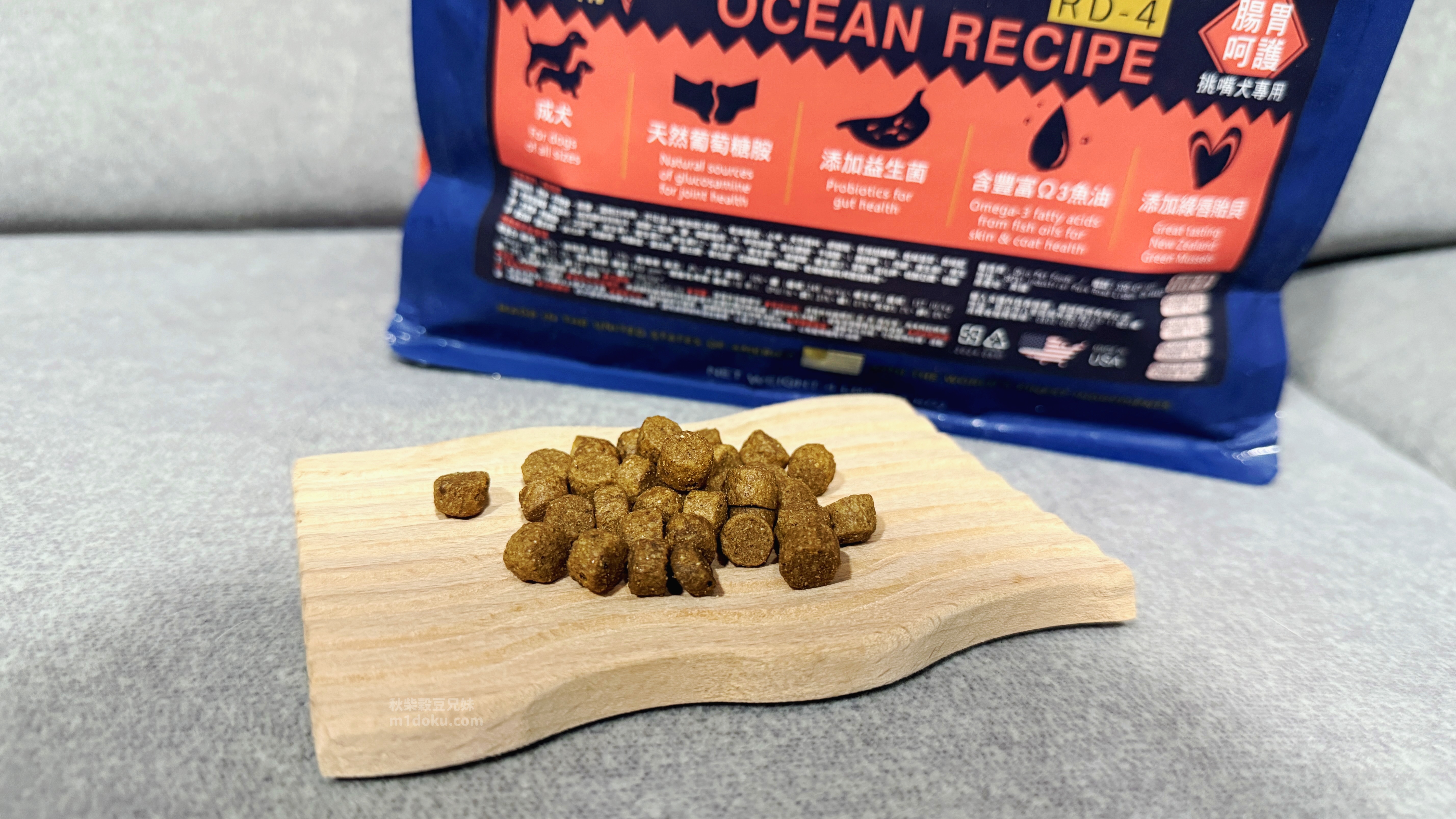 米豆米穀吃的是RD4 成犬 鮭魚 腸胃呵護,顆粒大小相當適中好入口,適口性很好,聞起來可以聞到鮭魚的香氣,最棒的地方是,整包飼料裡面的成分沒有額外添加其他肉源,很重要的一點是裡面完全沒有雞的成分,這對於像米穀會對雞肉過敏的毛孩簡直太棒了!也讓身為飼主的我能夠安心的給米穀享用!採用獨特溫火慢燉的方式,能夠最大限度保留營養價值,嚴選頂級配方提供毛孩完整的成長食譜。