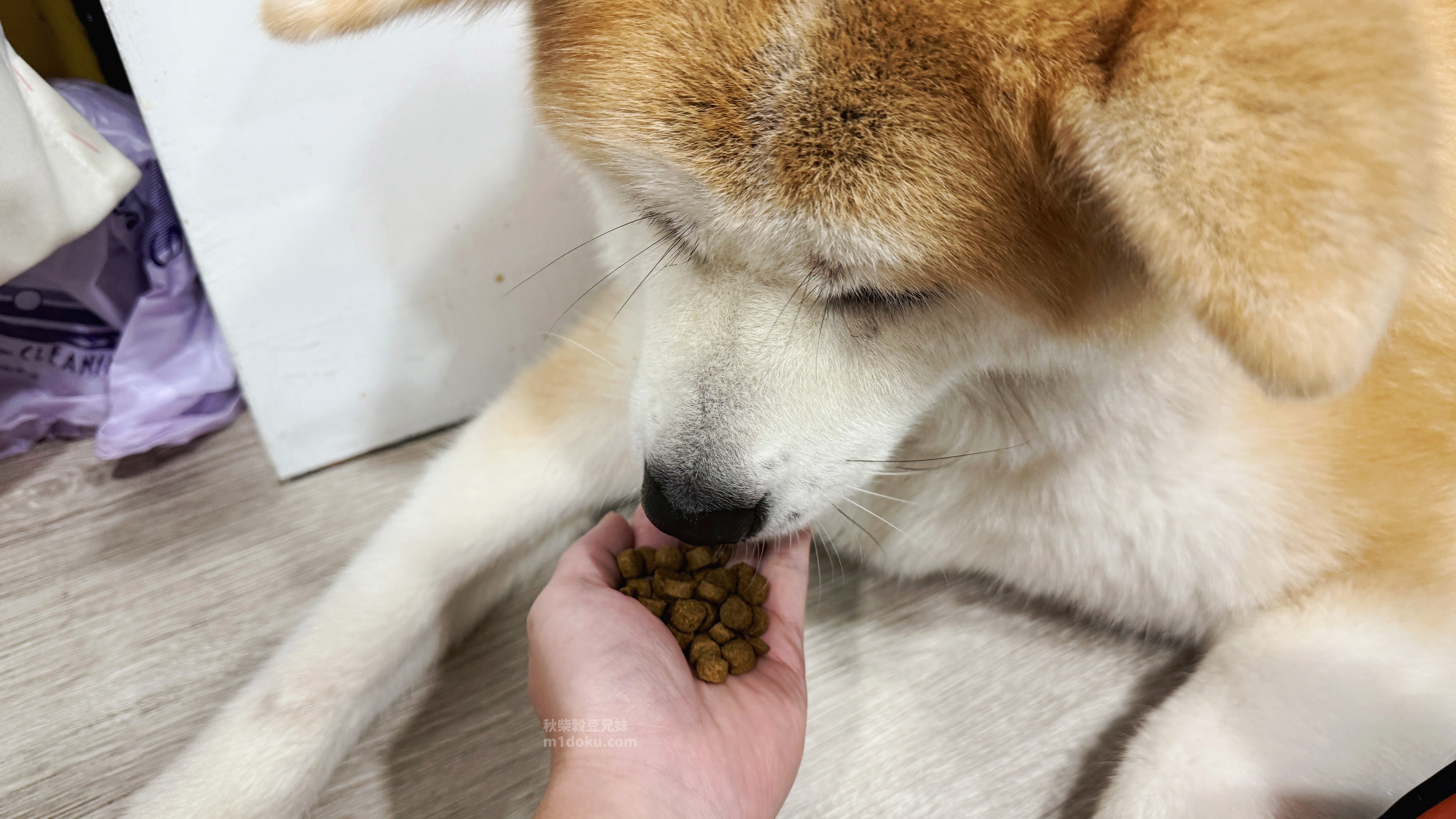 很擔心兩隻挑食的小狗會不會不喜歡,所以先裝了少少的份量讓他們嘗試看看,首先一開始米豆只是聞了一下好像沒什麼興趣,但在我沒有監督著他吃的情況下,自己偷偷的舔了幾口發現味道很不錯,於是就接著吃光了,等到我發現時已經光盤,我又用手裝了一些讓他吃吃看,沒想到這次不加思索的直接就吃了起來,馬麻我好感動呀!米穀更不用說,馬麻餵總是比較香,完全想都沒想就直接開心的吃了起來,可見適口性相當好,連挑嘴的毛孩都愛上呢!