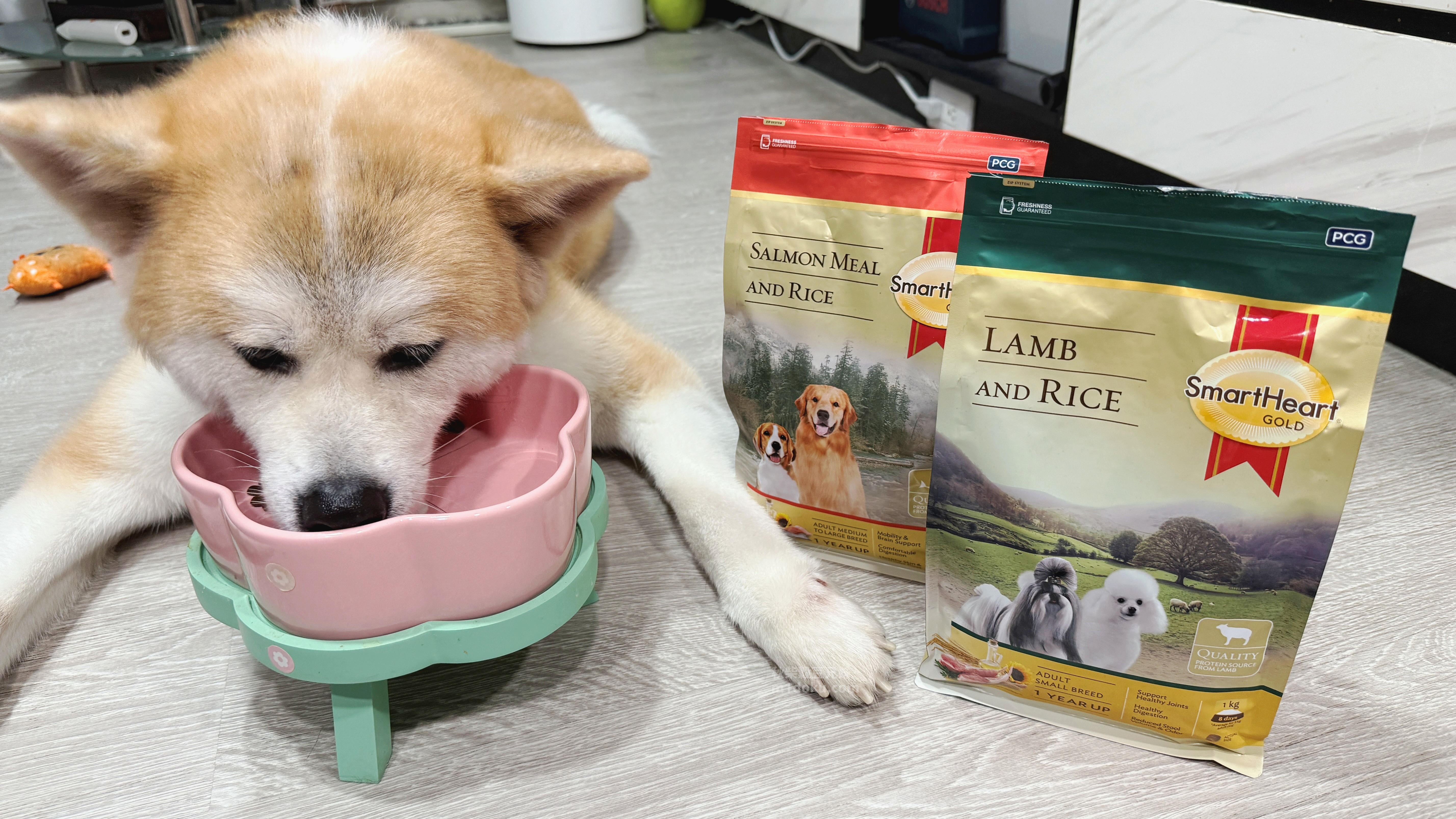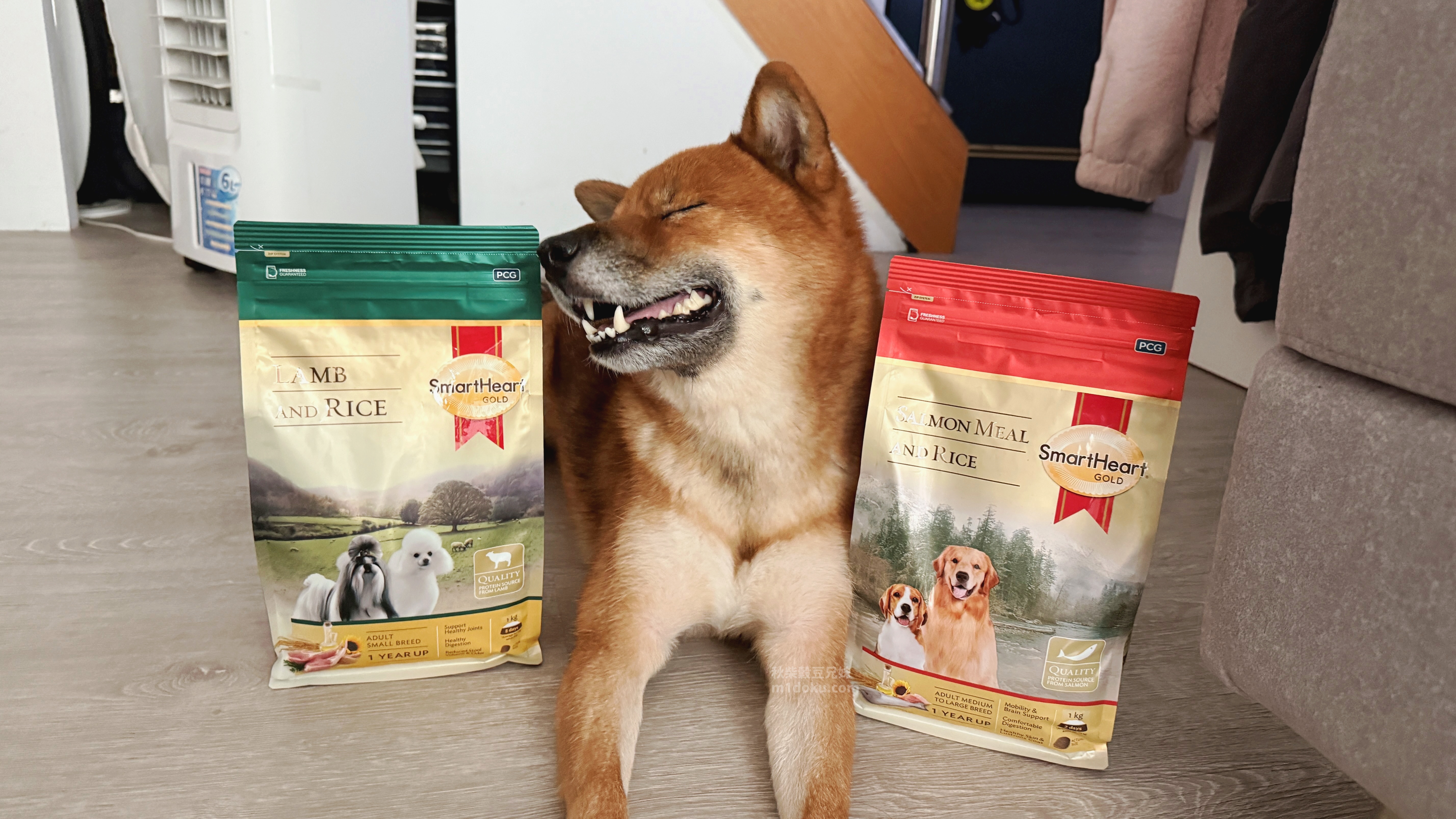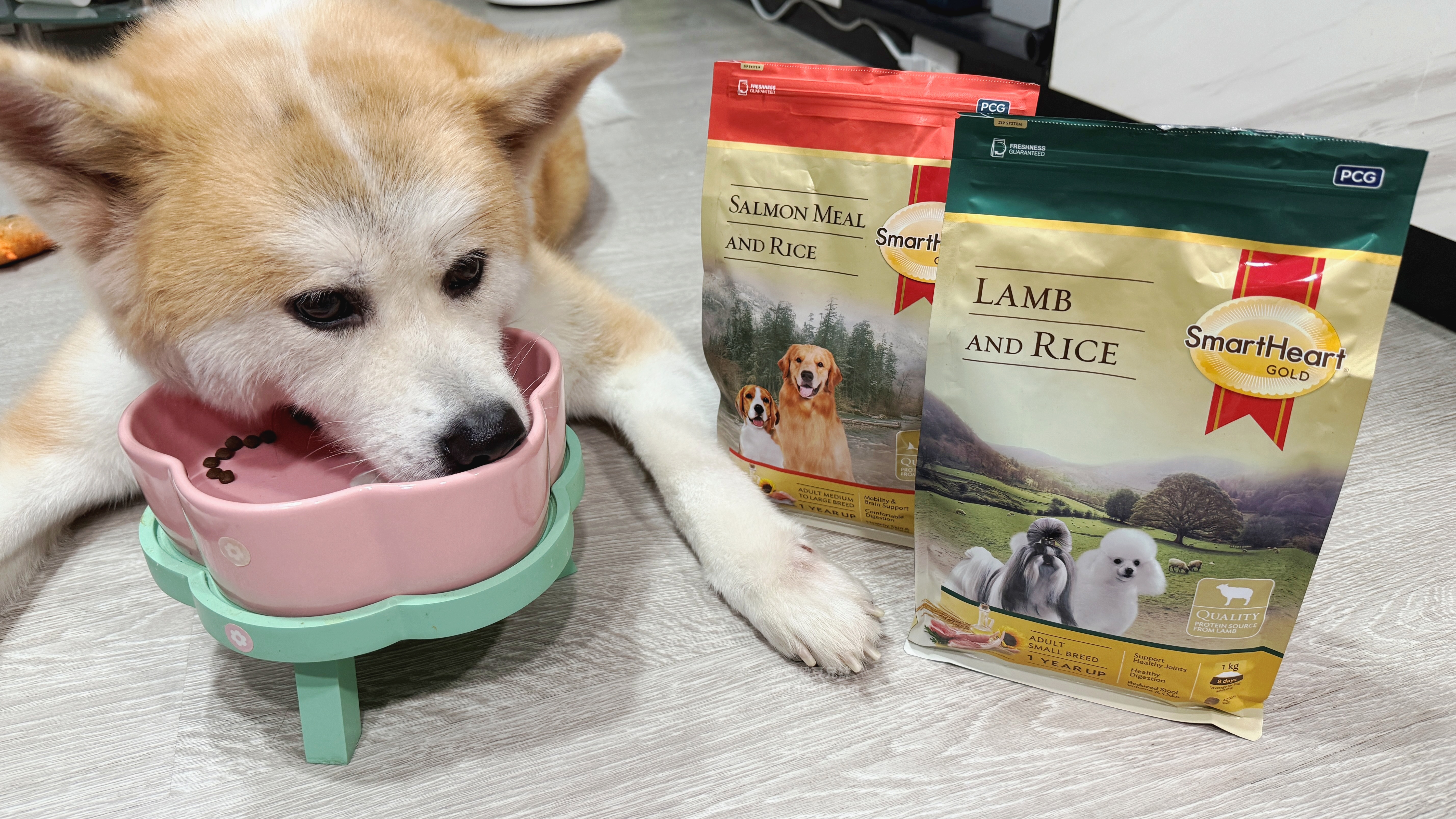 慧心自然系列的SmartHeart Gold®慧心自然犬糧,口味有兩種,分別是牧野羊肉+米、冰海鮭魚+米,為中小型犬/中大型犬兩種款式,差別在顆粒大小,注意到慧心自然系列的SmartHeart Gold®慧心自然犬糧是因為它的配方設計真的很吸引我,它主打單一動物蛋白,像是羊肉或鮭魚,不會混合多種肉類,尤其是雞肉,這對米穀來說真的很重要。而且除了不含雞肉之外,玉米、小麥、大豆等常見過敏原也都沒有添加,對敏感體質的毛孩真的很友善。還有一點我很在意,它裡面沒有人工防腐劑、香料或色素,而是用天然的迷迭香和維生素E天然抗氧化成分,免疫力維持與整體健康,再加上原料與製程有經過國際認證,整體給我的印象就是比一般市售飼料更有保障。