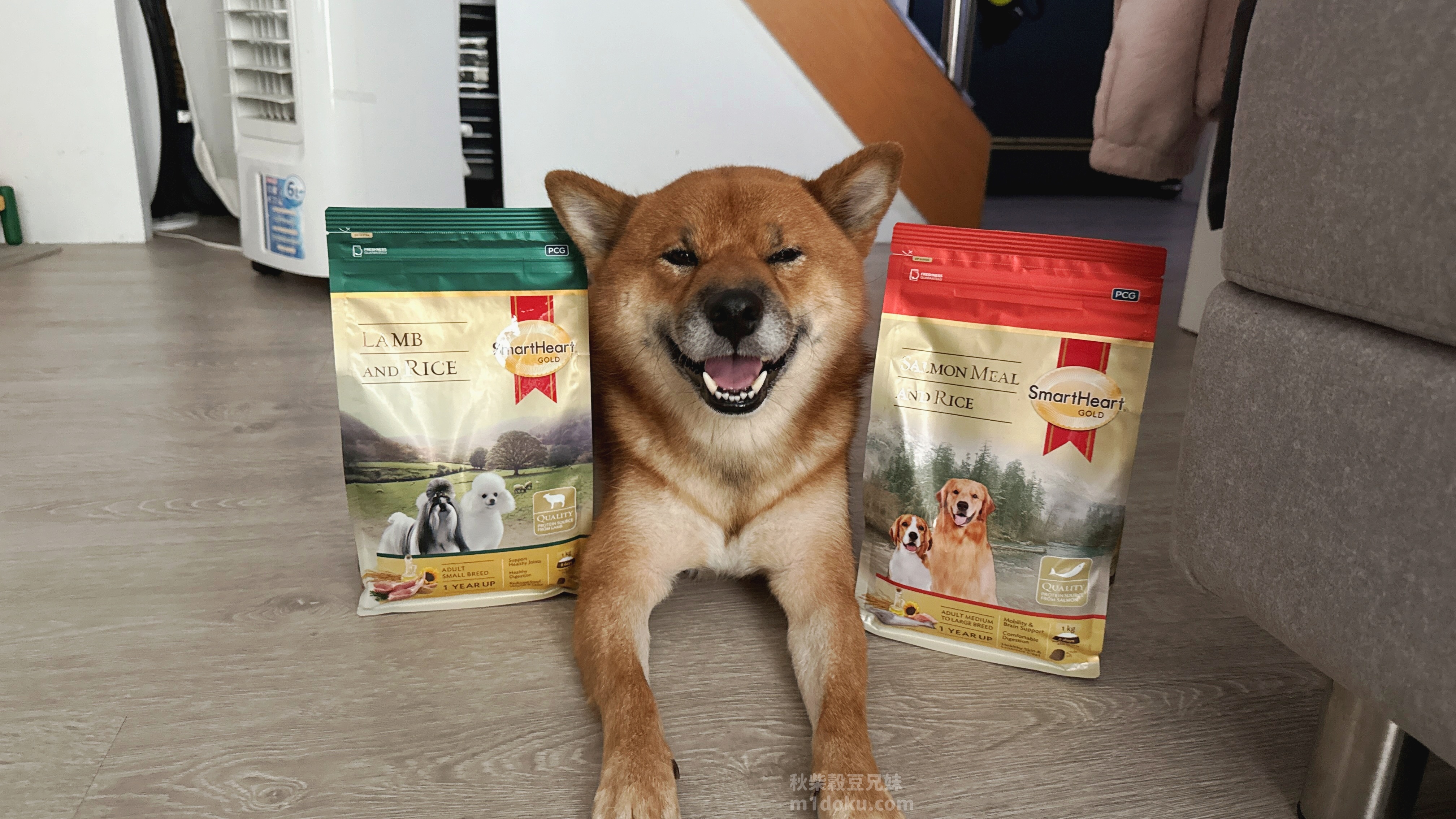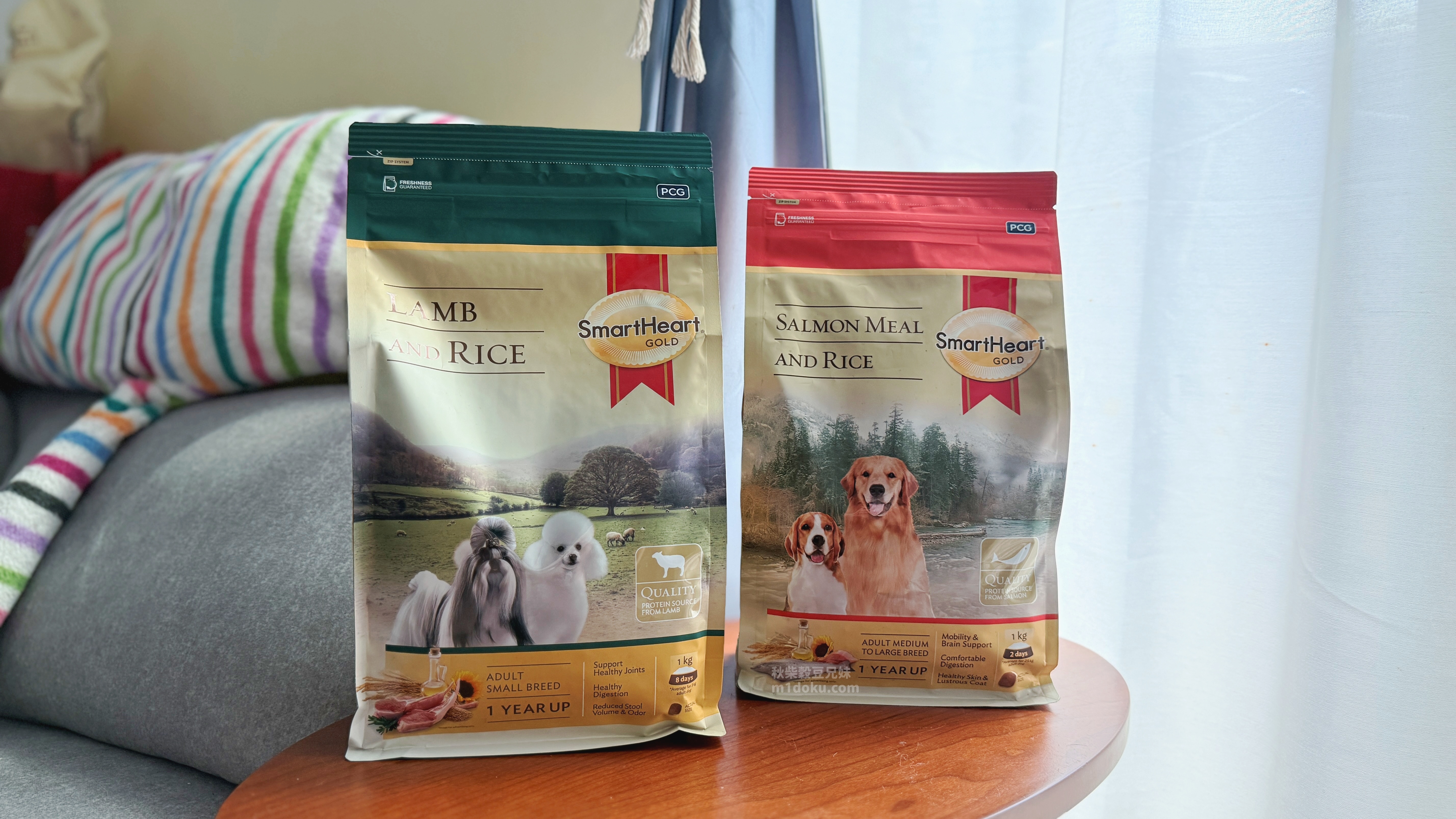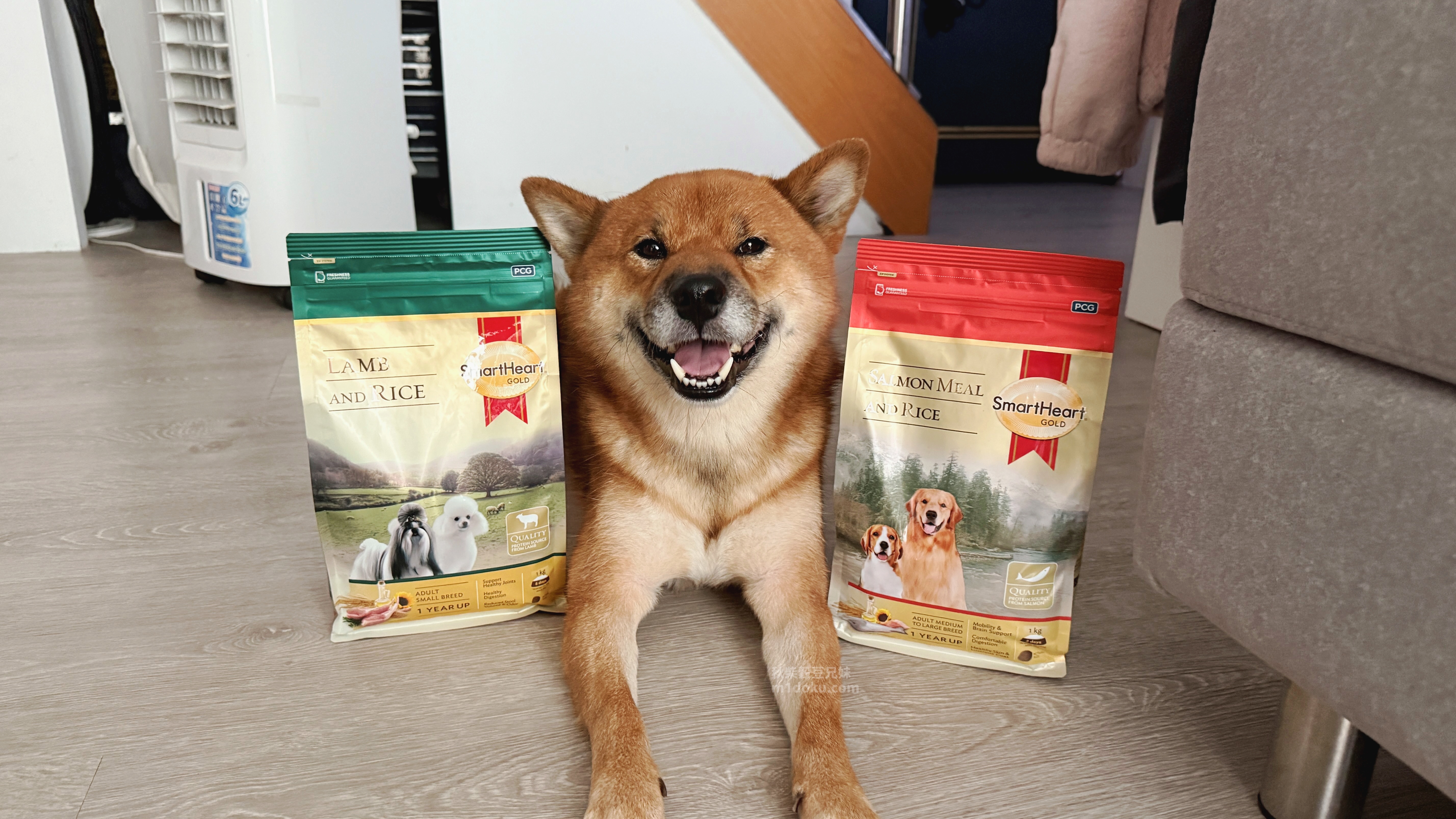 慧心自然系列的SmartHeart Gold®慧心自然犬糧,口味有兩種,分別是牧野羊肉+米、冰海鮭魚+米,為中小型犬/中大型犬兩種款式,差別在顆粒大小,注意到慧心自然系列的SmartHeart Gold®慧心自然犬糧是因為它的配方設計真的很吸引我,它主打單一動物蛋白,像是羊肉或鮭魚,不會混合多種肉類,尤其是雞肉,這對米穀來說真的很重要。而且除了不含雞肉之外,玉米、小麥、大豆等常見過敏原也都沒有添加,對敏感體質的毛孩真的很友善。還有一點我很在意,它裡面沒有人工防腐劑、香料或色素,而是用天然的迷迭香和維生素E天然抗氧化成分,免疫力維持與整體健康,再加上原料與製程有經過國際認證,整體給我的印象就是比一般市售飼料更有保障。